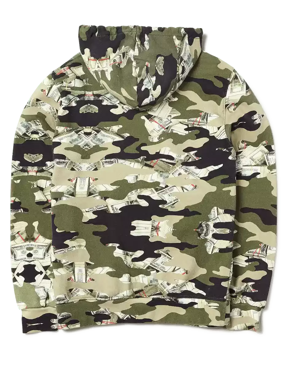 | Felpa con cappuccio 100% cotone, stampa mimetica, tasca frontale, cappuccio con coulisse |