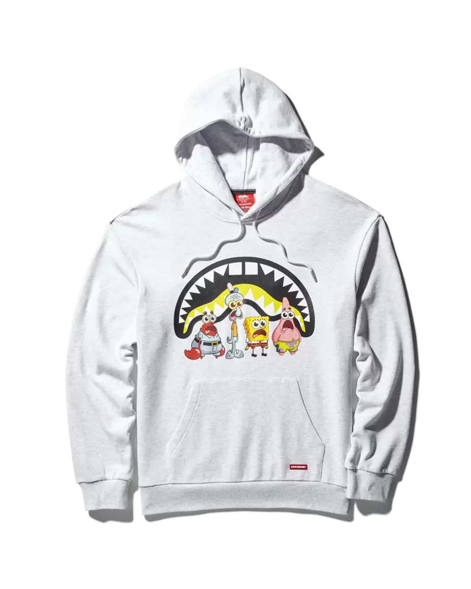 Tasca a marsupio anteriore, felpa con cappuccio, coulisse e punta in metallo, toppa ricamata in ciniglia con logo Sprayground sul petto, logo in gomma con firma Sprayground sull’orlo anteriore, nastro verticale a forma di bocca di squalo all’interno del collo.