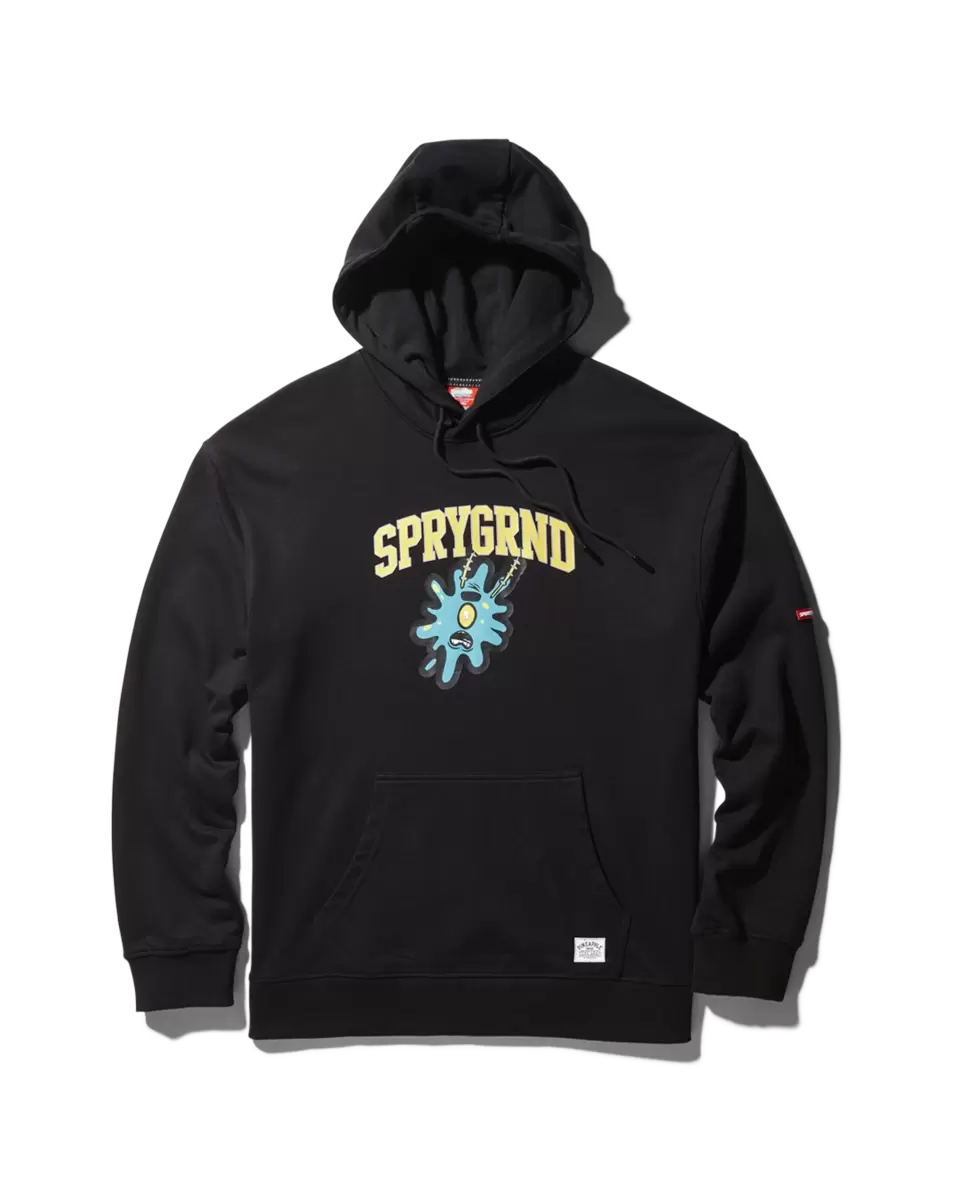 Tasca a marsupio anteriore, felpa con cappuccio, coulisse e punta in metallo, toppa ricamata in ciniglia con logo Sprayground sul petto, logo in gomma con firma Sprayground sull’orlo anteriore, nastro verticale a forma di bocca di squalo all’interno del collo.