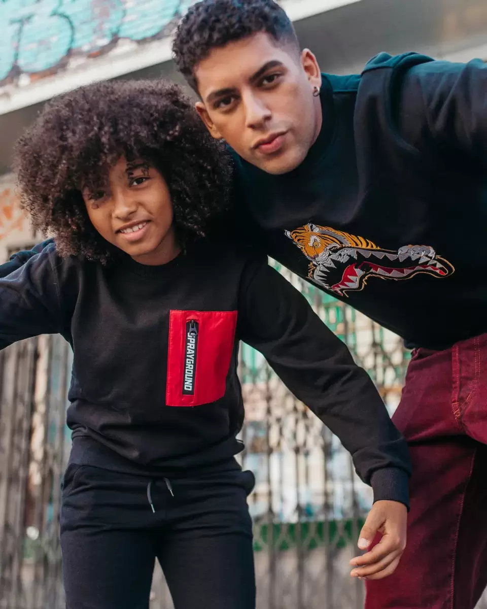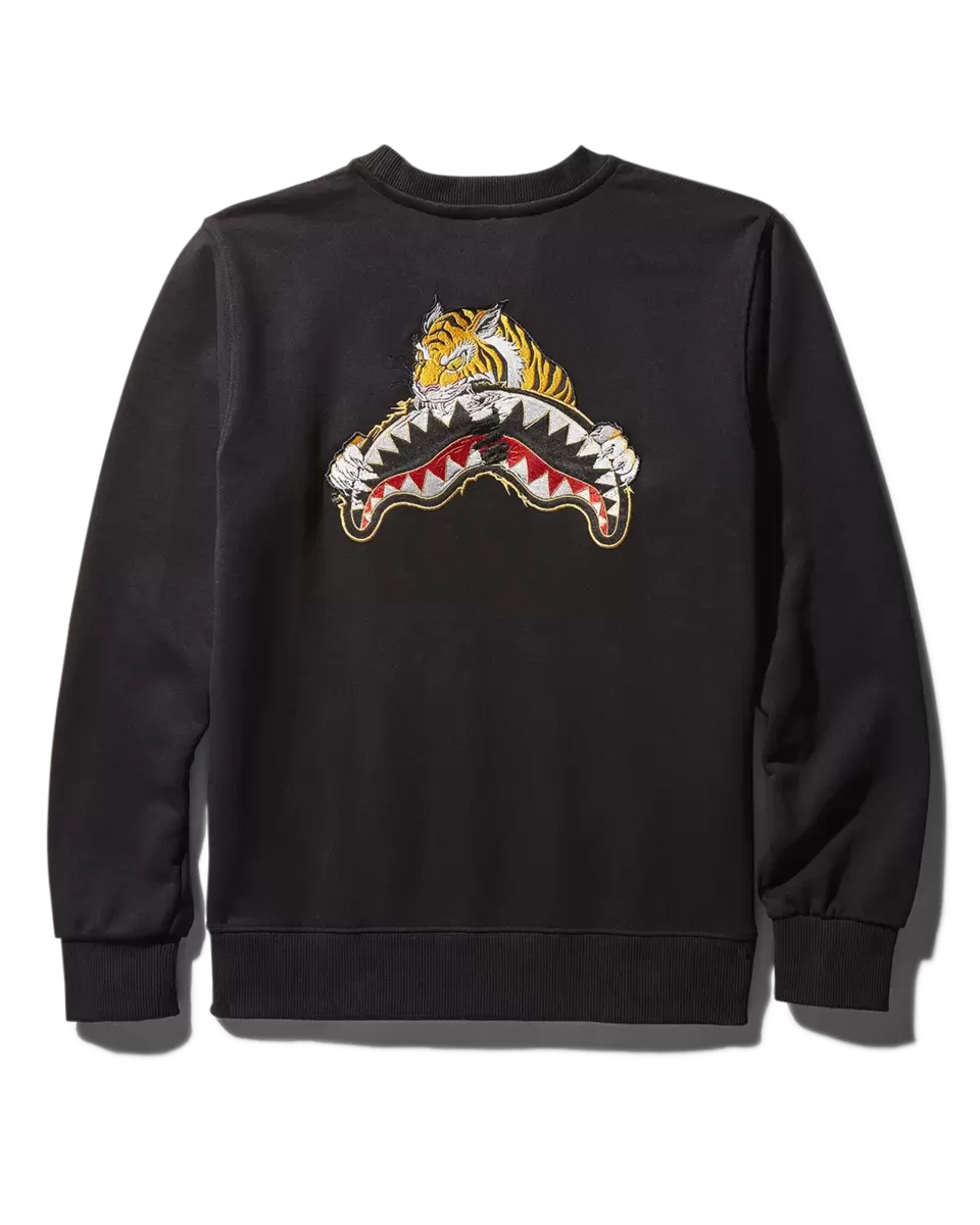 100% COTONE Dettagli MAGLIA GIROCOLLO NERA CON RICAMO, ANNO DELLA TIGRE, GRAFICA SPRAYGROUND