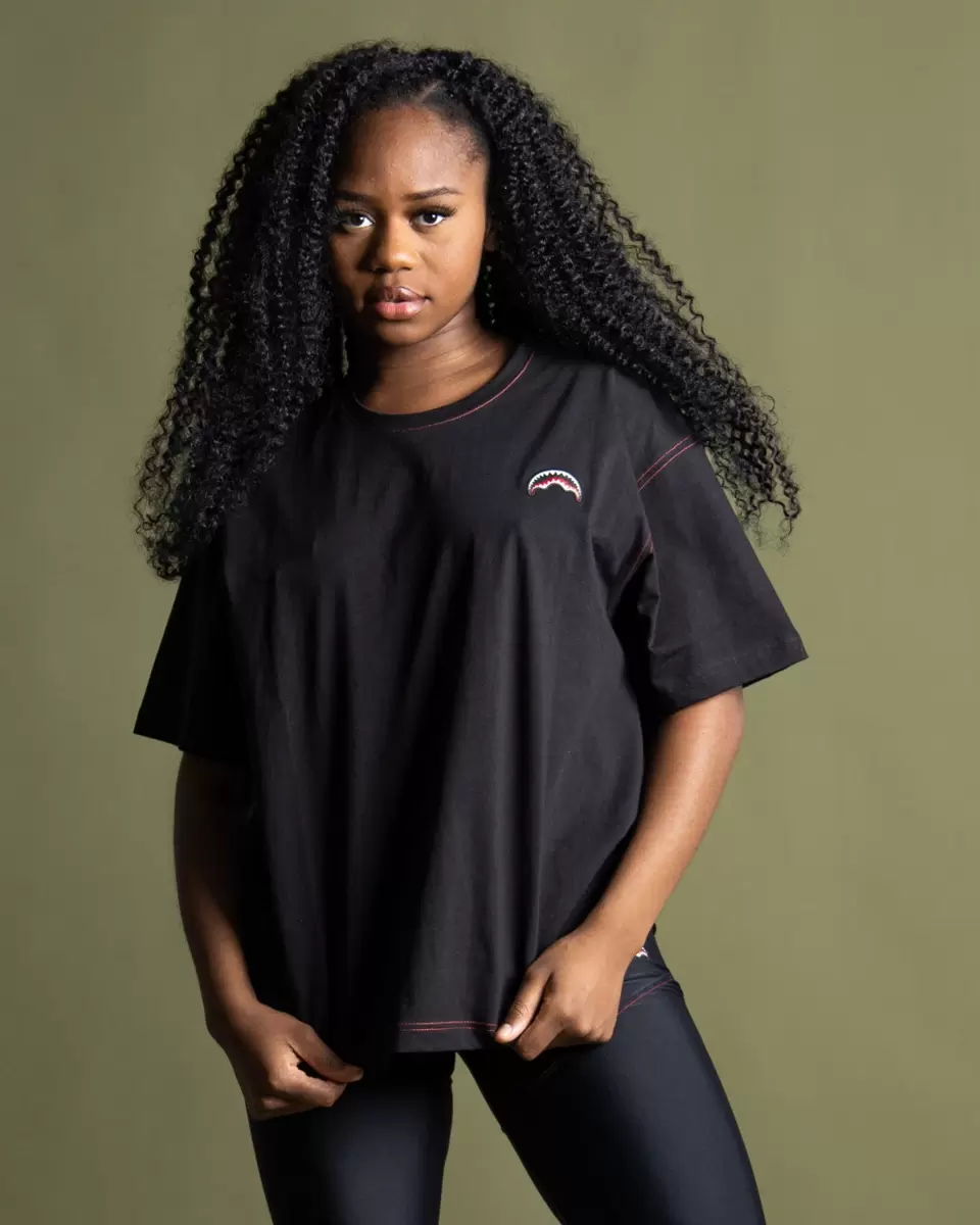 | T-shirt a maniche corte con cuciture a contrasto e logo a forma di bocca di squalo ricamato. Orlo posteriore in maglia di jersey |