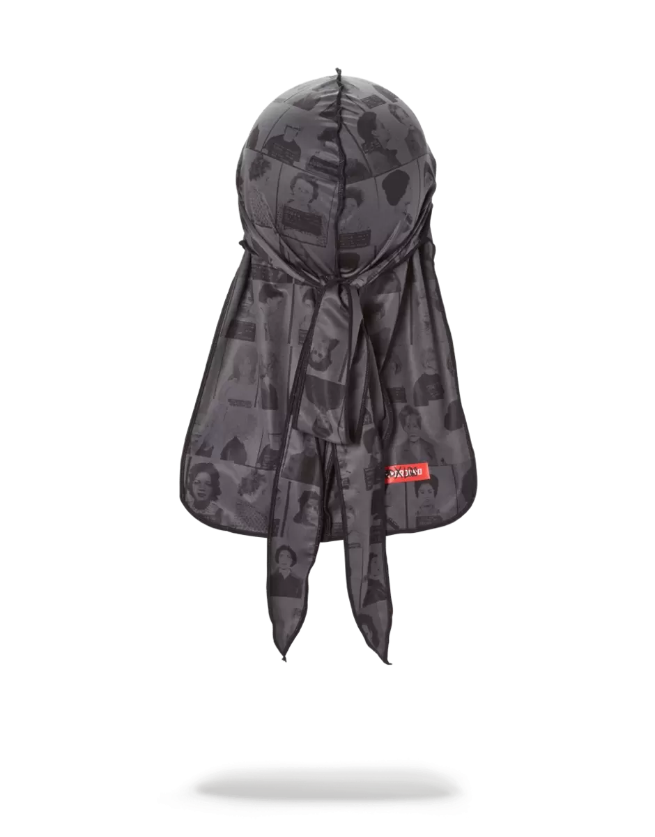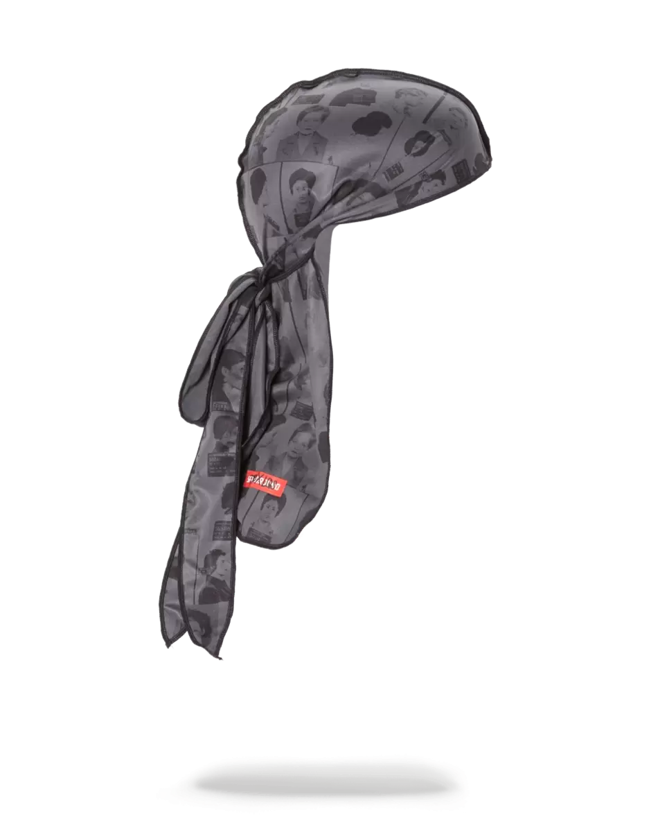 Dettagli del prodotto: Durag stampato esclusivo della collezione Scammer in taglia L, frutto della collaborazione LQS x DBD. La stampa presenta foto segnaletiche di donne potenti condannate per corruzione.