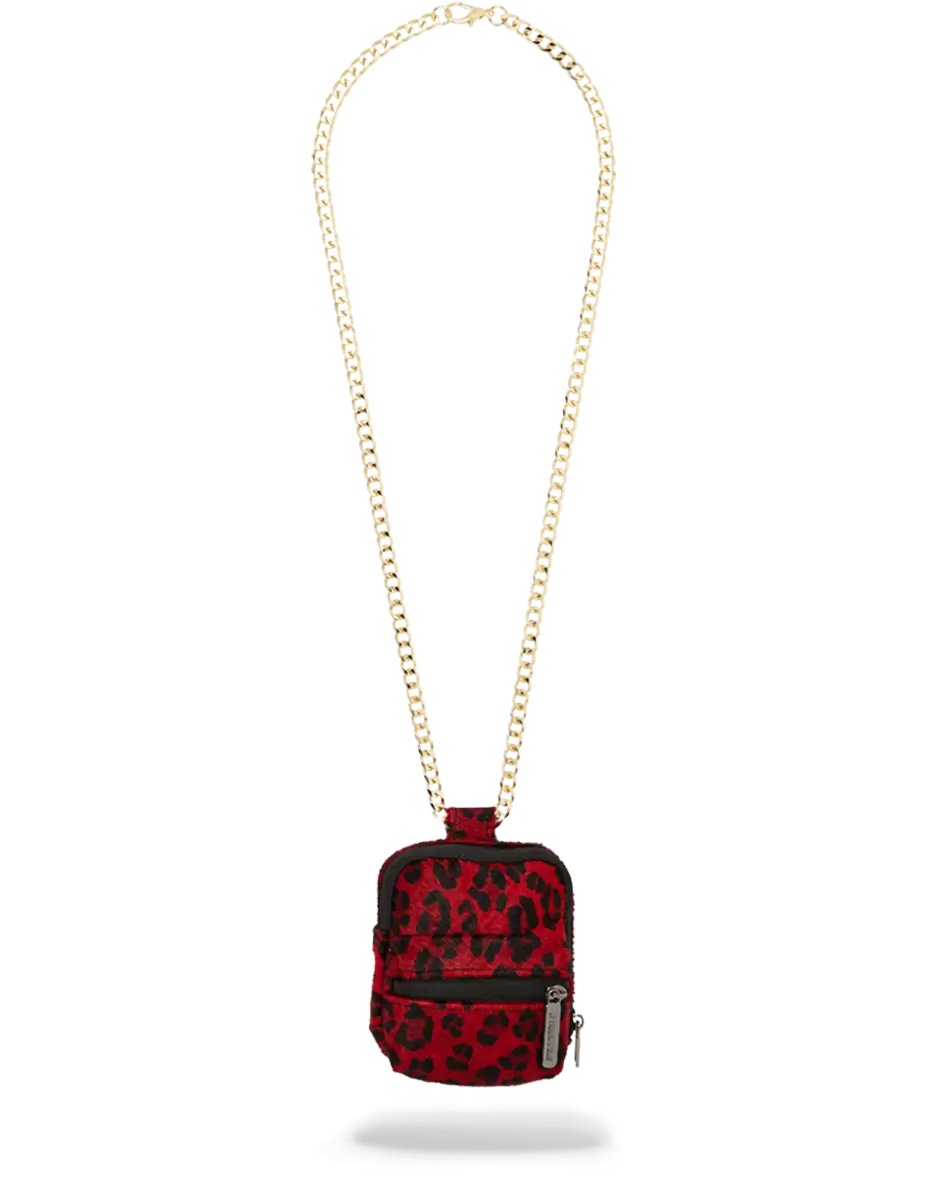 ZAINO CON CATENA IN PELLICCIA LEOPARDATA ROSSA