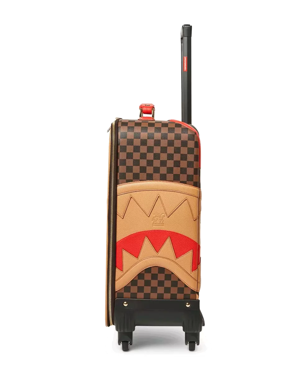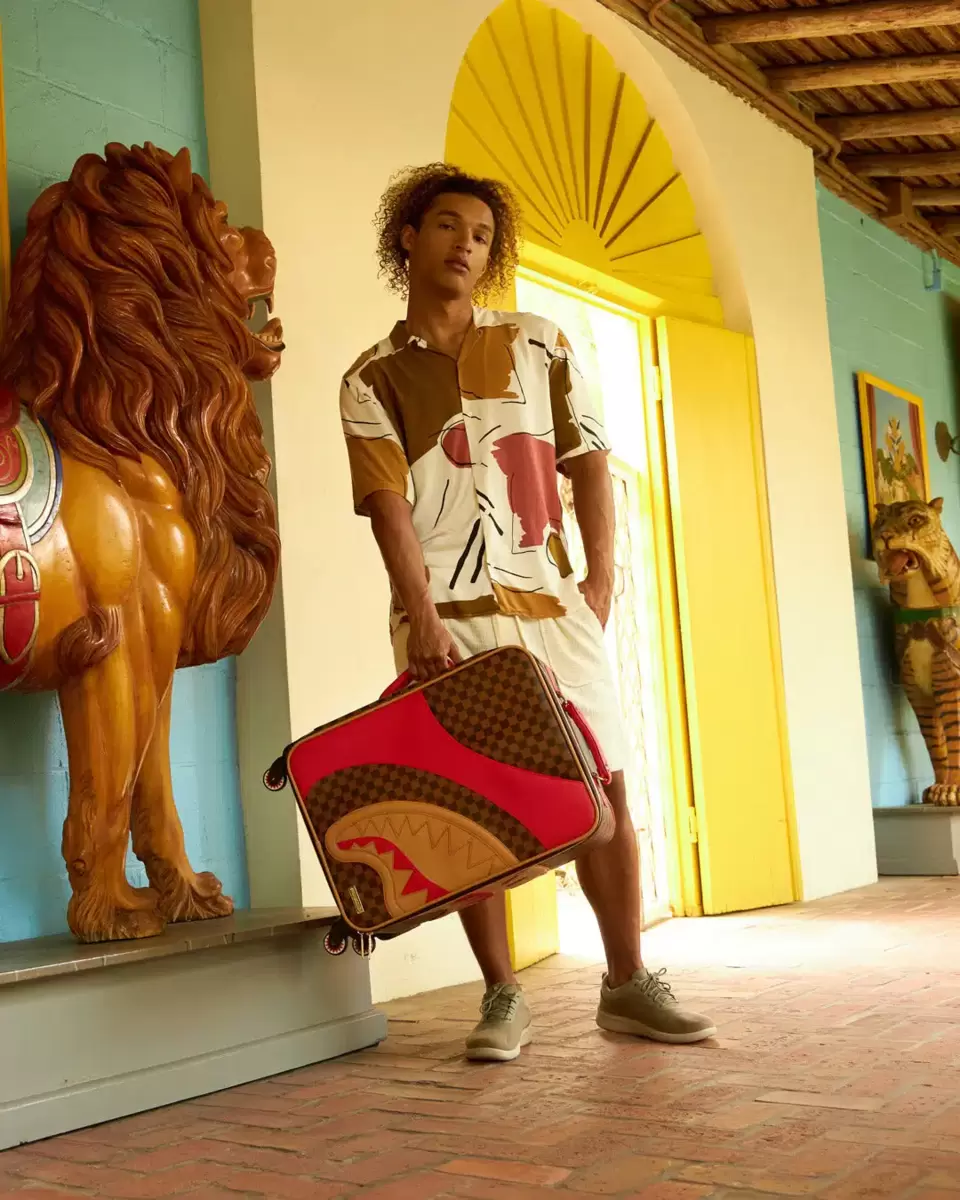 ESTERNO: Rivestimento in cloruro di polivinile al 100%, ovvero 100% similpelle. Altezza: 19,5″ x Larghezza: 14,5″ x Profondità: 7″ Telaio con cerniera YKK®. Tasca esterna frontale. Logo in rilievo. Manici superiori e laterali in similpelle. 4 doppie ruote girevoli incassate. Maniglia telescopica regolabile in 2 posizioni. INTERNO: Molteplici tasche e scomparti per la massima organizzazione. 3 tasche con cerniera. 4 tasche in rete. Fodera in raso con stampa squalo. Tasche organizer in rete. Cinghie di fissaggio. Cerniere in nylon con hardware in metallo.
