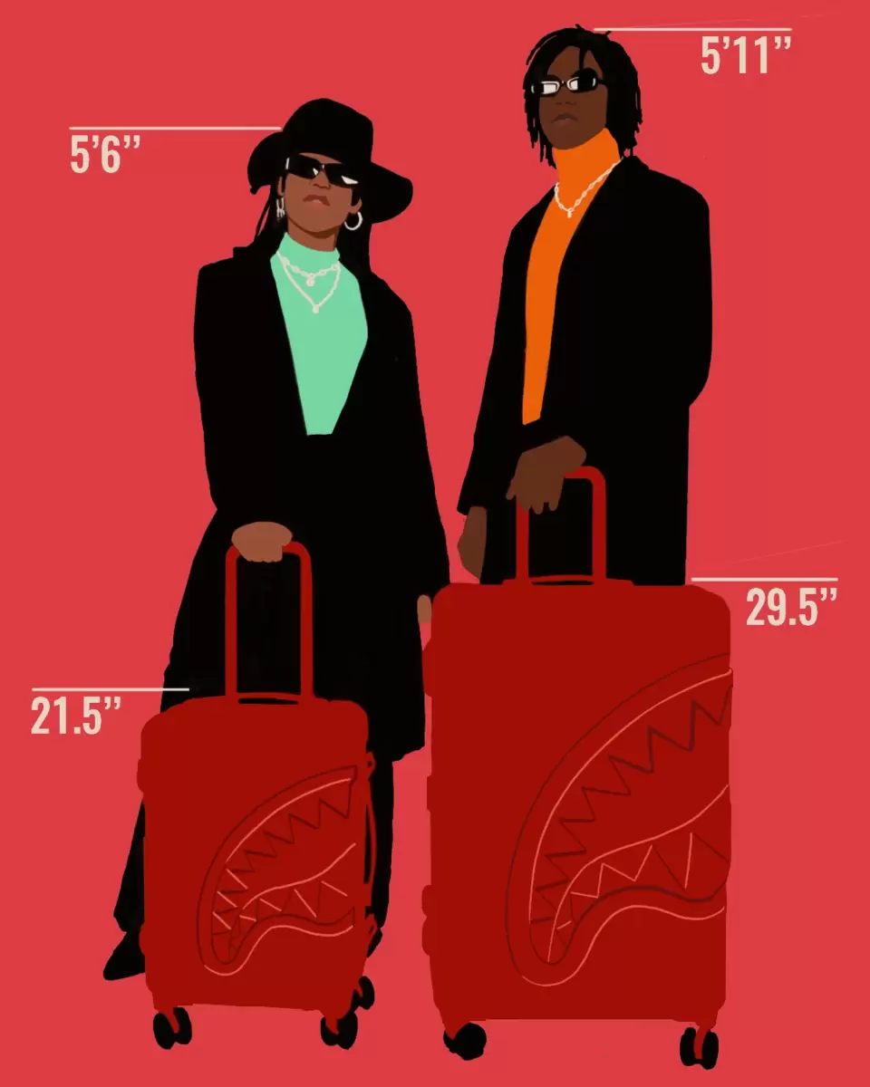 BAGAGLIO A MANO 22″ DETTAGLI DEL PRODOTTO ESTERNO: SCULTURA DI SQUALO BREVETTATA N. D852504, D854321 Guscio in policarbonato al 100% resistente e indistruttibile Approvato TSA Dimensioni con ruote: A: 21,5″ x L: 13,74″ x P: 8,66″* Serrature di sicurezza TSA Telaio in lega di alluminio senza cerniera 4 doppie ruote girevoli incassate Maniglia telescopica regolabile INTERNO: Molteplici tasche e scomparti per la massima organizzazione Fodera in raso con stampa di denaro Tasche organizer in rete Cinghie di fissaggio Cerniere in nylon con hardware in metallo