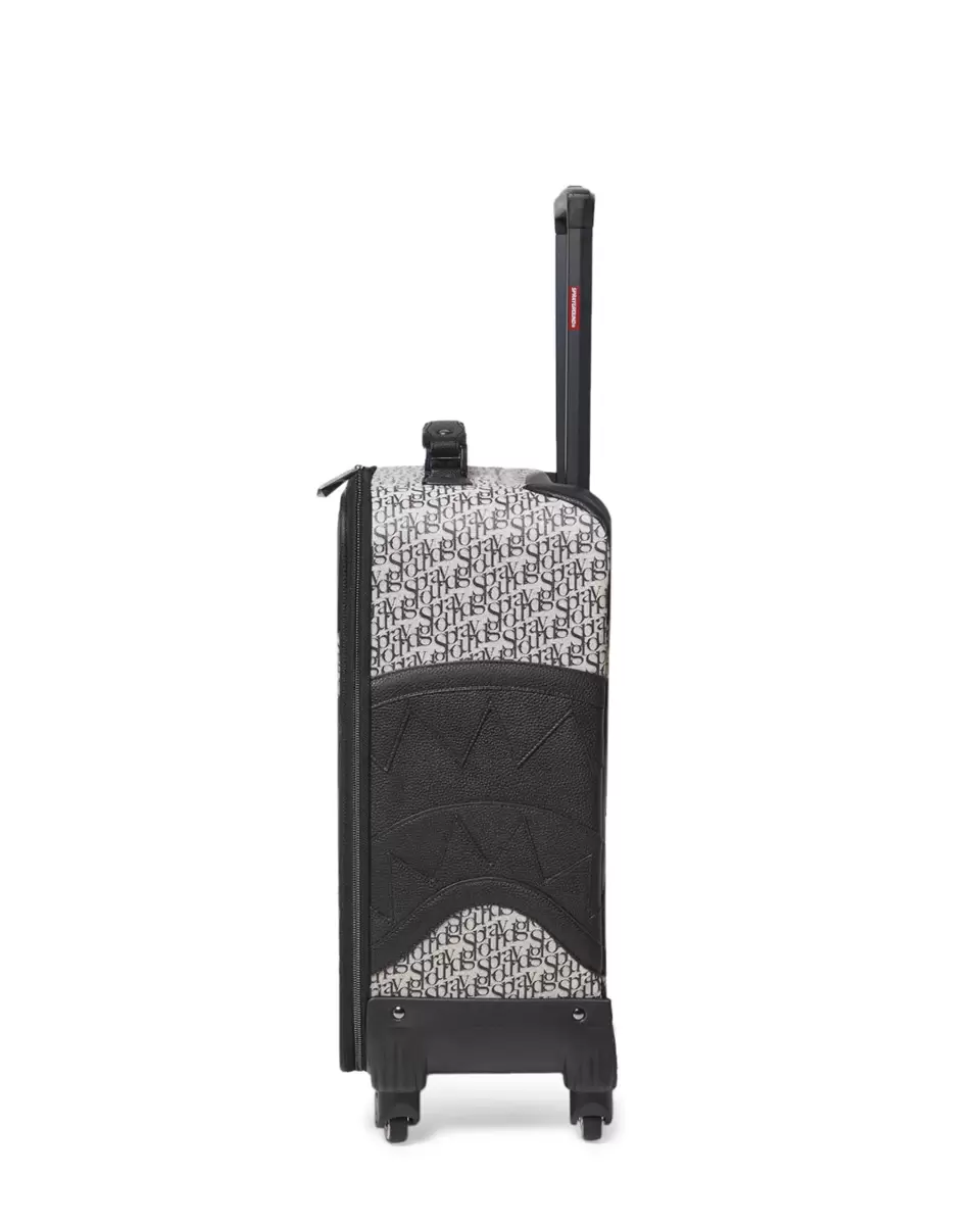 ESTERNO: Rivestimento in cloruro di polivinile al 100%, ovvero pelle vegana al 100%, altezza: 19,5″ x larghezza: 14,5″ x profondità: 7″, cerniera YKK®, tasca esterna frontale, logo in rilievo, manici superiori e laterali in similpelle, 4 doppie ruote girevoli incassate, maniglia telescopica regolabile in 2 posizioni, INTERNO: numerose tasche e scomparti per la massima organizzazione, 3 tasche con cerniera, 4 tasche in rete, fodera in raso con stampa squalo, tasche organizer in rete, cinghie di fissaggio, cerniere in nylon con hardware in metallo.