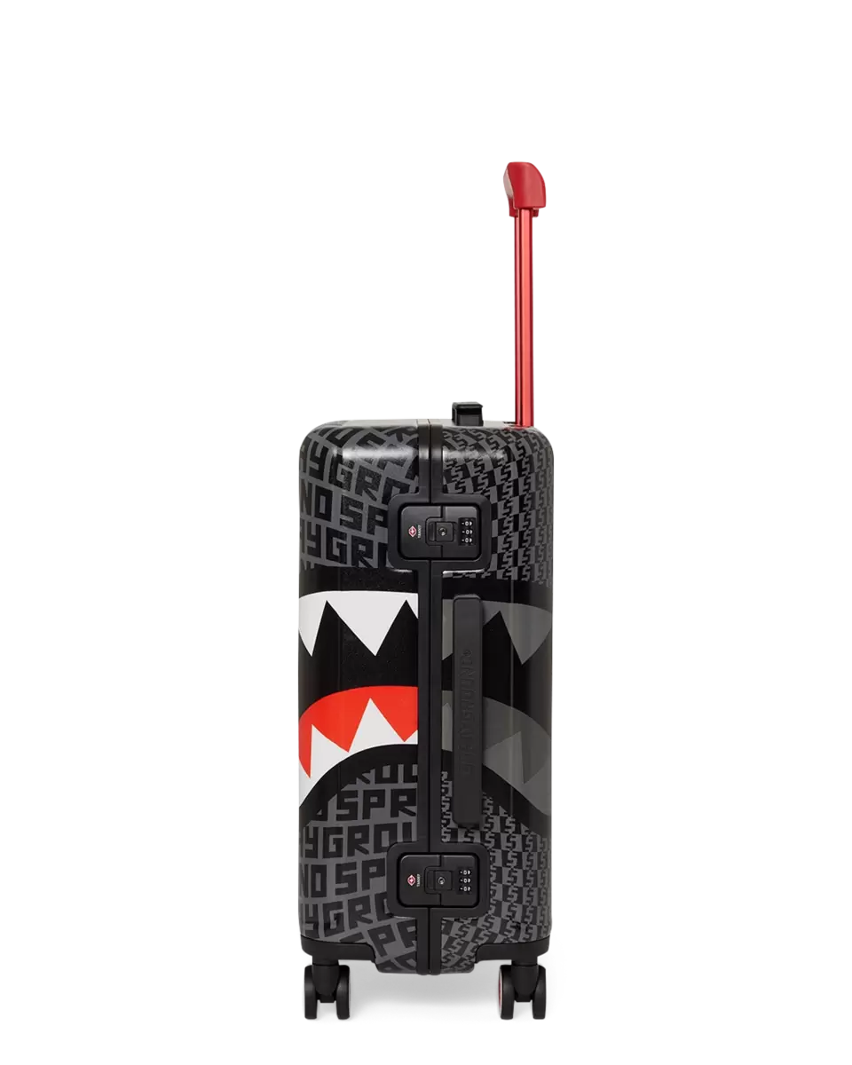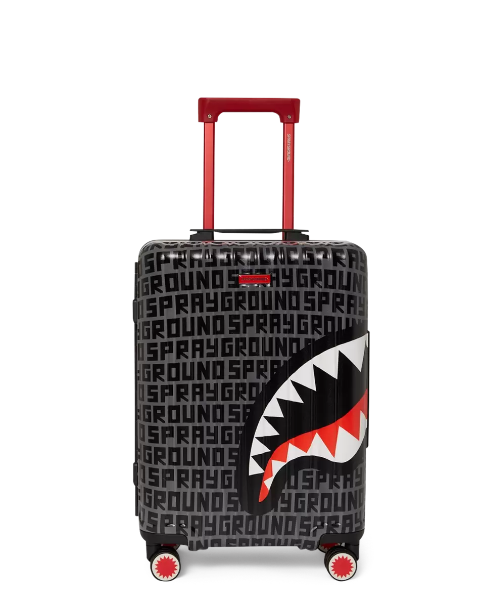 BAGAGLIO A MANO 22″ DETTAGLI DEL PRODOTTO ESTERNO: SCULTURA DI SQUALO BREVETTATA N. D852504, D854321 Guscio in policarbonato al 100% resistente e indistruttibile Approvato TSA Dimensioni con ruote: A: 21,5″ x L: 13,74″ x P: 8,66″* Serrature di sicurezza TSA Telaio in lega di alluminio senza cerniera 4 doppie ruote girevoli incassate Maniglia telescopica regolabile INTERNO: Molteplici tasche e scomparti per la massima organizzazione Fodera in raso con stampa di denaro Tasche organizer in rete Cinghie di fissaggio Cerniere in nylon con hardware in metallo