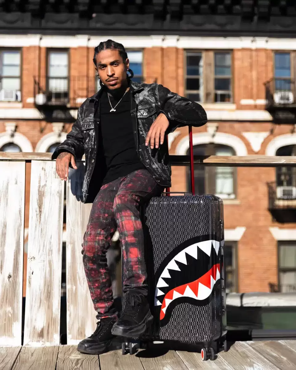 BAGAGLIO FULL-SIZE 29,5″ DETTAGLI DEL PRODOTTO ESTERNO: SCULTURA DI SQUALO BREVETTATA N. D852504, D854321 Guscio in policarbonato al 100% resistente e indistruttibile Dimensioni approvate TSA con ruote: A: 29,7″ x l: 18,5″ x p: 11″* Serrature di sicurezza TSA Telaio in lega di alluminio senza cerniera 4 doppie ruote girevoli incassate Altezza della maniglia telescopica regolabile INTERNO: Molteplici tasche e scomparti per la massima organizzazione Fodera in raso con stampa di denaro Tasca organizer in rete Cinghie di fissaggio Cerniere in nylon con hardware in metallo