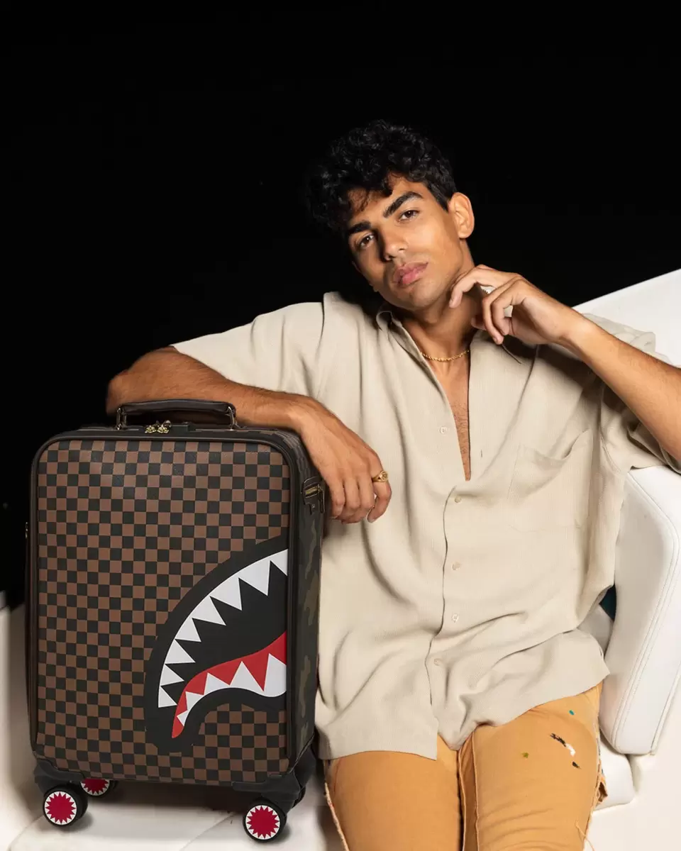 ESTERNO: Rivestimento in cloruro di polivinile al 100%, ovvero 100% similpelle. Altezza: 19,5″ x Larghezza: 14,5″ x Profondità: 7″ Telaio con cerniera YKK®. Tasca esterna frontale. Logo in rilievo. Manici superiori e laterali in similpelle. 4 doppie ruote girevoli incassate. Maniglia telescopica regolabile in 2 posizioni. INTERNO: Molteplici tasche e scomparti per la massima organizzazione. 3 tasche con cerniera. 4 tasche in rete. Fodera in raso con stampa squalo. Tasche organizer in rete. Cinghie di fissaggio. Cerniere in nylon con hardware in metallo.