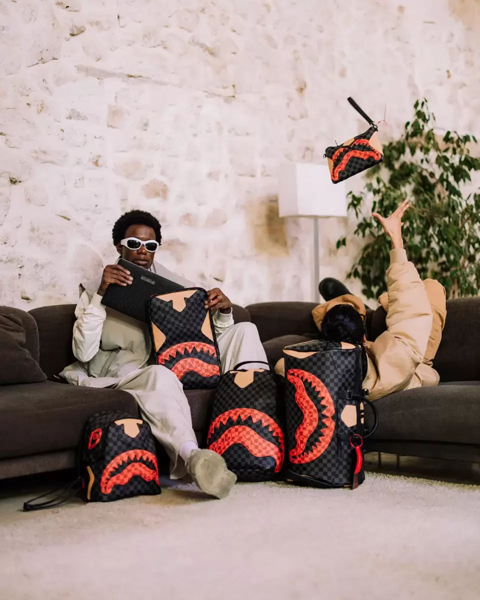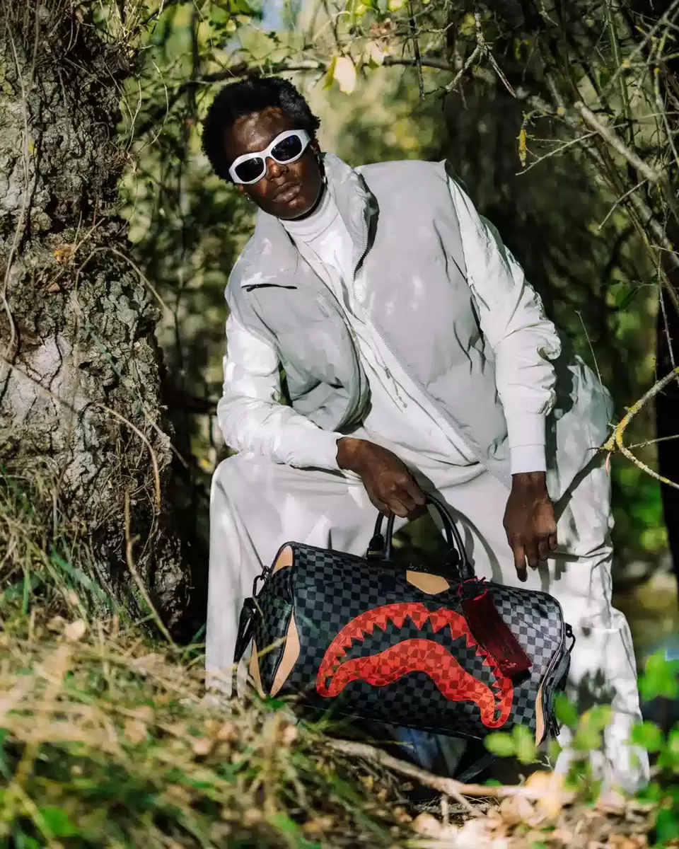 Dimensioni: 20″ x 10″ x 10,75″ Tasca con cerniera in metallo Cerniere posteriori Tasca per scarpe da ginnastica con cerniera cerniere dorate Cinghie regolabili per taglie personalizzate Cerniere in metallo con hardware in metallo Borsa di denaro Sprayground