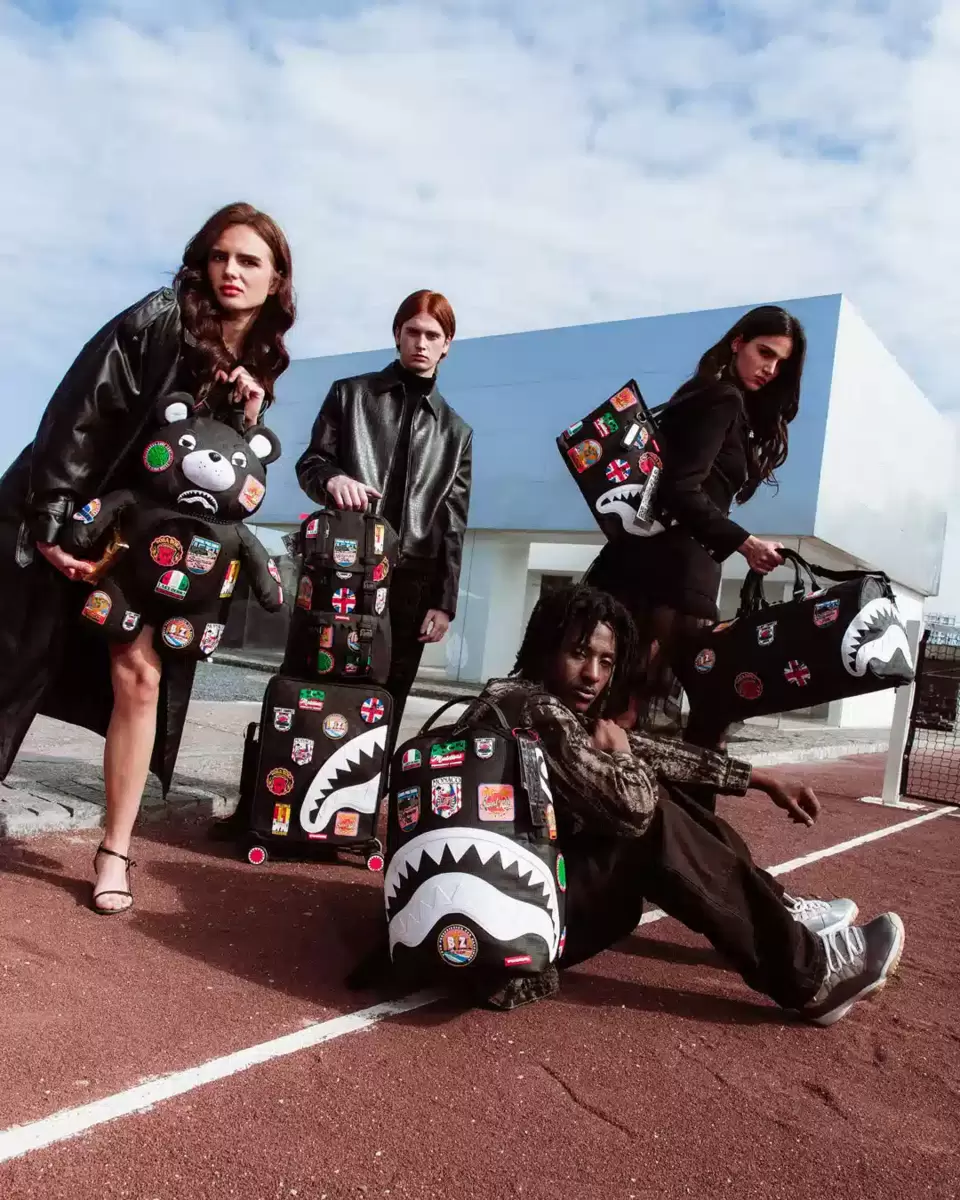 Dimensioni: 50,8 x 25,4 x 27,9 cm Tasca con cerniera in metallo Cerniere posteriori Tasca per scarpe da ginnastica con cerniera Cerniere dorate Cinghie regolabili per taglie personalizzate Cerniere in metallo con hardware in metallo Borsa di denaro Sprayground