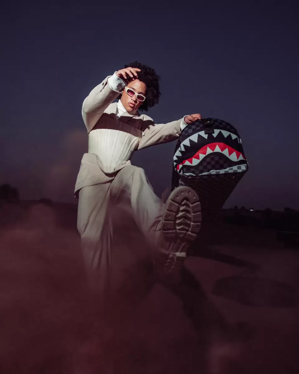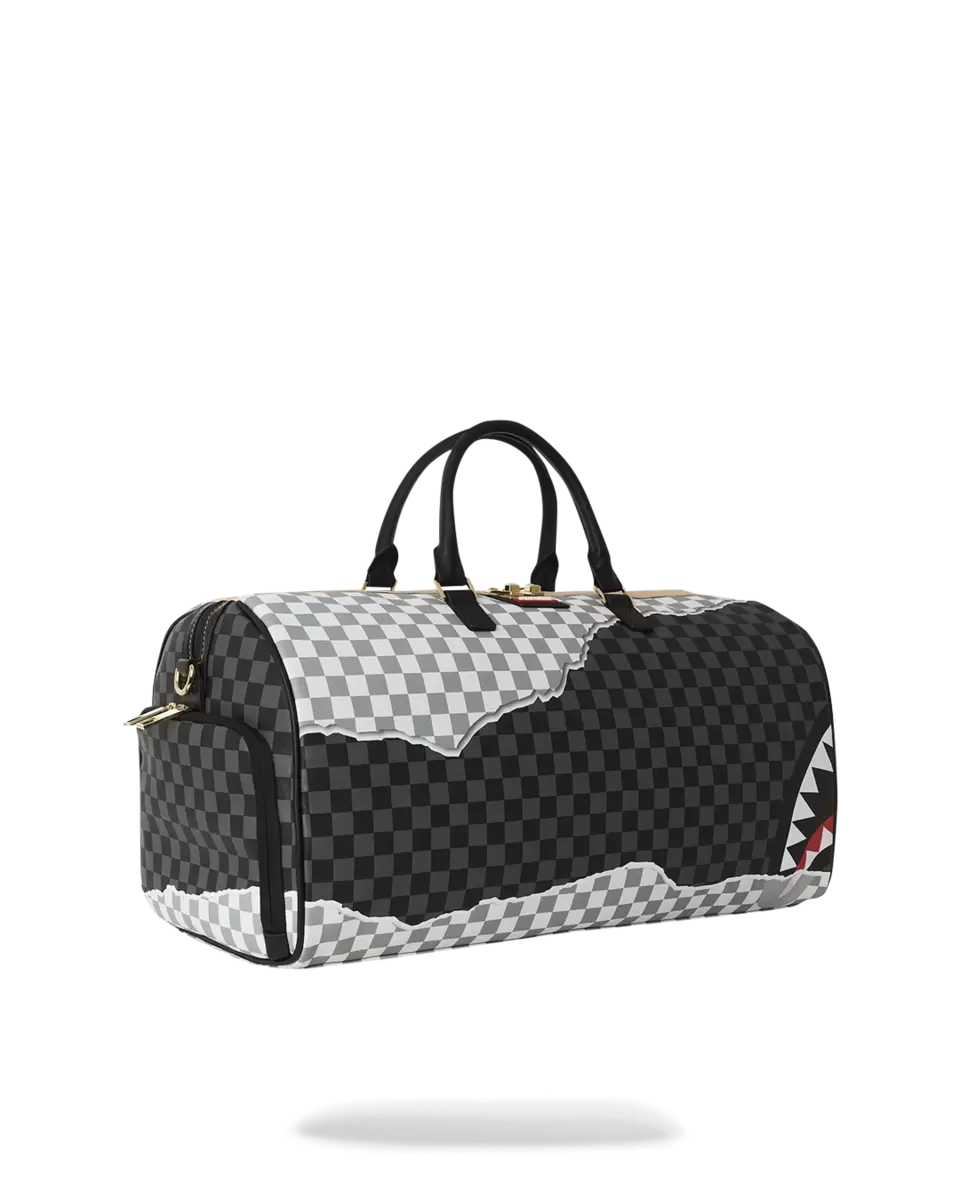 Dimensioni: 50,8 x 25,4 x 27,9 cm Tasca con cerniera in metallo Cerniere posteriori Tasca per scarpe da ginnastica con cerniera Cerniere dorate Cinghie regolabili per taglie personalizzate Cerniere in metallo con hardware in metallo Borsa di denaro Sprayground