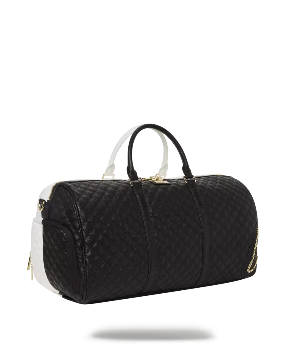 Dimensioni: 50,8 x 25,4 x 27,9 cm Tasca con cerniera in metallo Cerniere posteriori Tasca per scarpe da ginnastica con cerniera Cerniere dorate Cinghie regolabili per taglie personalizzate Cerniere in metallo con ferramenta in metallo Borsa di denaro Sprayground