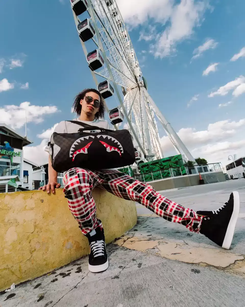 Dimensioni: 20″ x 10″ x 10,75″ Tasca con cerniera in metallo Cerniere posteriori Tasca per scarpe da ginnastica con cerniera cerniere dorate Cinghie regolabili per taglie personalizzate Cerniere in metallo con hardware in metallo Borsa di denaro Sprayground