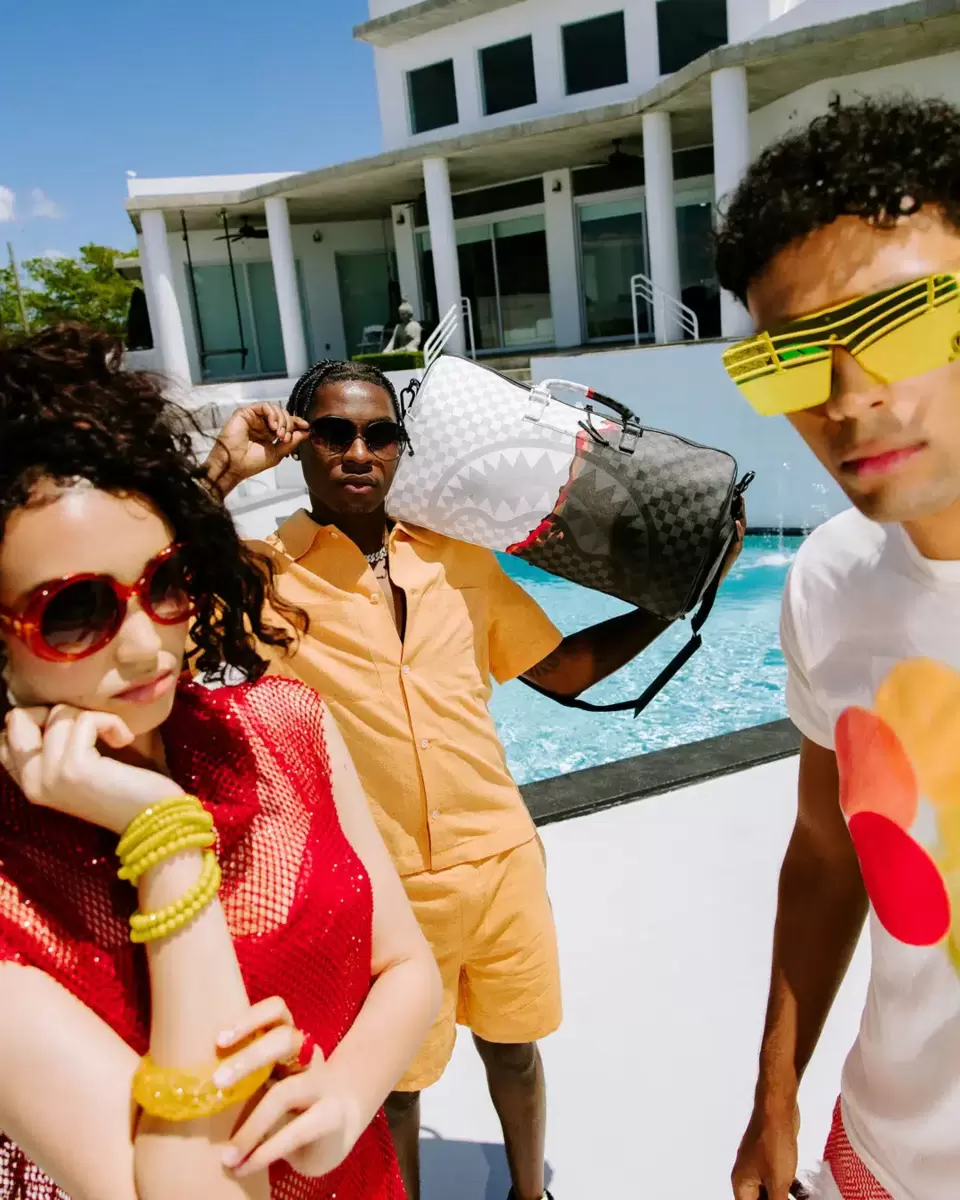 Dimensioni: 20″ x 10″ x 10,75″ Tasca con cerniera in metallo Cerniere posteriori Tasca per scarpe da ginnastica con cerniera cerniere dorate Cinghie regolabili per taglie personalizzate Cerniere in metallo con hardware in metallo Borsa di denaro Sprayground