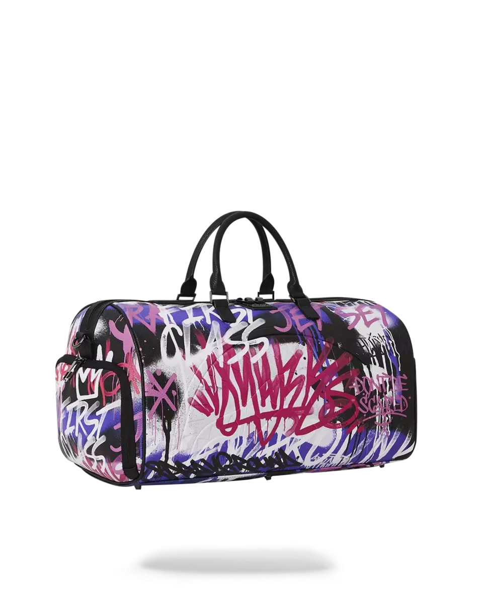 Dimensioni: 20″ x 10″ x 10,75″ Tasca con cerniera in metallo Cerniere posteriori Tasca per scarpe da ginnastica con cerniera Cerniere dorate Cinghie regolabili per taglie personalizzate Cerniere in metallo con hardware in metallo Borsa di denaro Sprayground