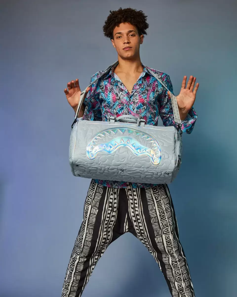 Dimensioni: 50,8 x 25,4 x 27,9 cm Tasca con cerniera in metallo Cerniere posteriori Tasca per scarpe da ginnastica con cerniera Cerniere dorate Cinghie regolabili per taglie personalizzate Cerniere in metallo con hardware in metallo Borsa di denaro Sprayground