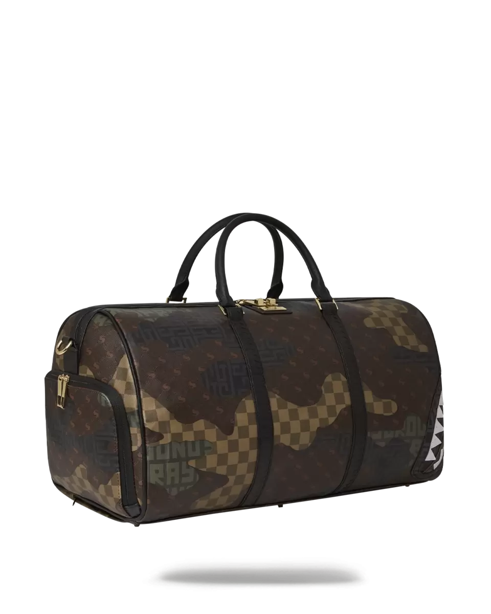 Dimensioni: 20″ x 10″ x 10,75″ Tasca con cerniera in metallo Cerniere posteriori Tasca per scarpe da ginnastica con cerniera Cerniere dorate Cinghie regolabili per taglie personalizzate Cerniere in metallo con hardware in metallo Borsa di denaro Sprayground