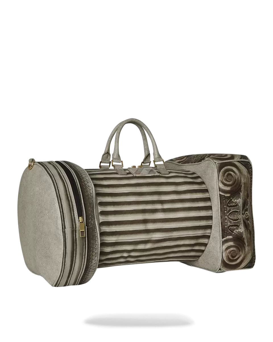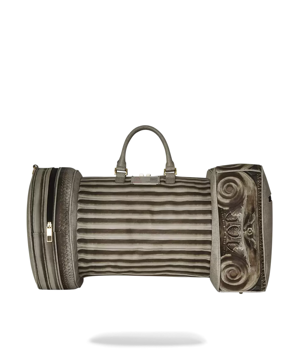 L’imponente sezione di una colonna (circa 300 a.C.) del Tempio greco di Artemide a Sardi è stata trasformata in una borsa da viaggio Sprayground. La colonna è stata girata su un lato e adatta le delicate incisioni fogliacee sul suo capitello, una caratteristica unica tra i capitelli esistenti del tempio. Sebbene la colonna originale un tempo svettasse a oltre 18 metri di altezza, il suo capitello è leggermente più piccolo di altri rinvenuti nel sito.