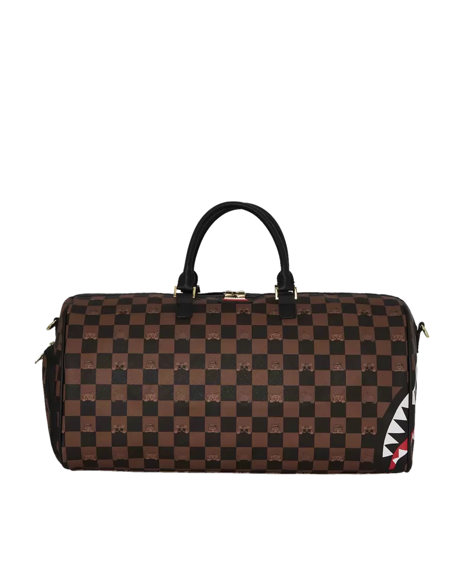 Dimensioni: 20″ x 10″ x 10,75″ Tasca con cerniera in metallo Cerniere posteriori Tasca per scarpe da ginnastica con cerniera cerniere dorate Cinghie regolabili per taglie personalizzate Cerniere in metallo con hardware in metallo Borsa di denaro Sprayground