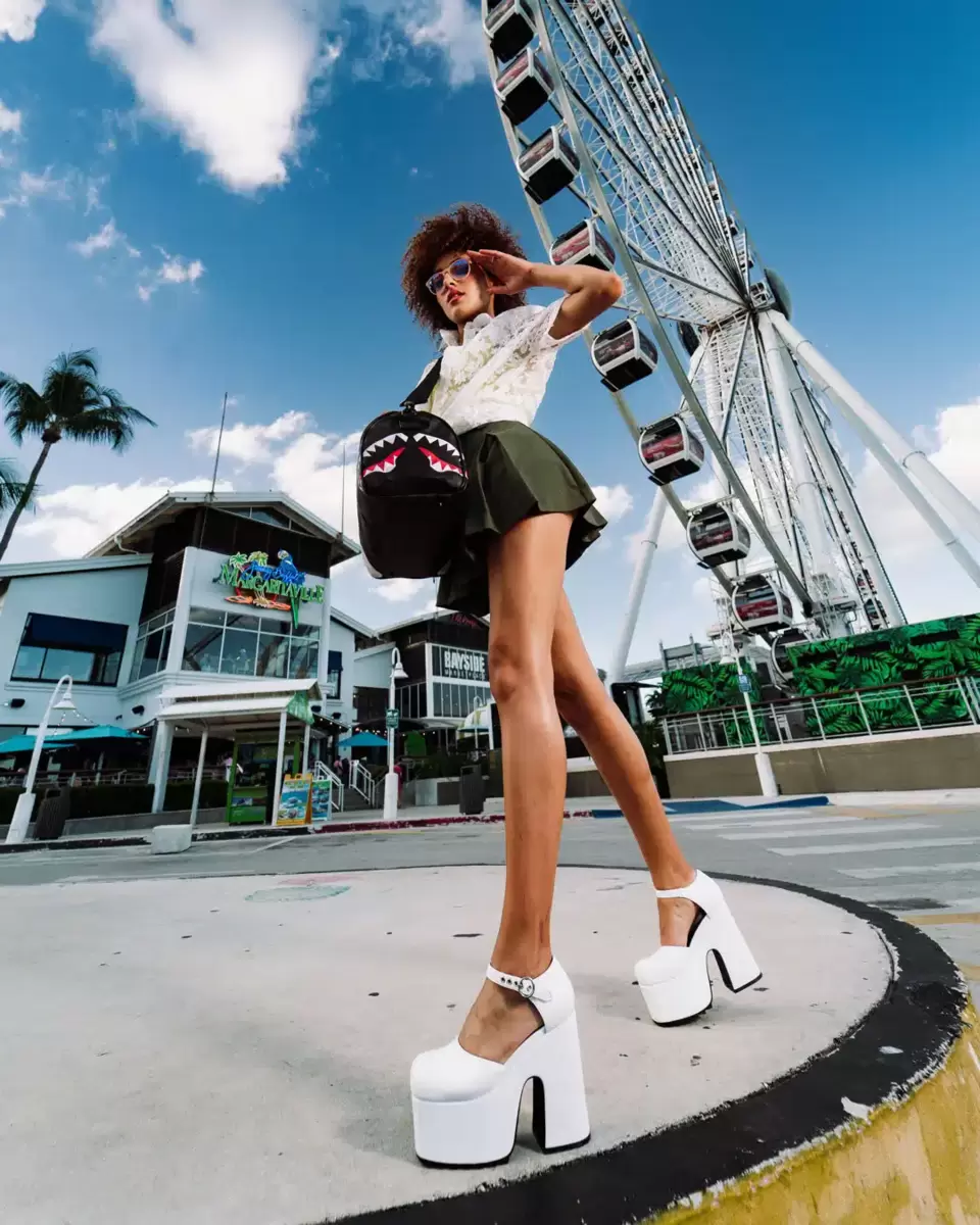 Dimensioni: 8″ x 7,5″ x 13″ Tasca con cerniera in metallo Cerniere posteriori Tasca per scarpe da ginnastica con cerniera cerniere dorate Cinghie regolabili per taglie personalizzate Cerniere in metallo con hardware in metallo Borsa di denaro Sprayground