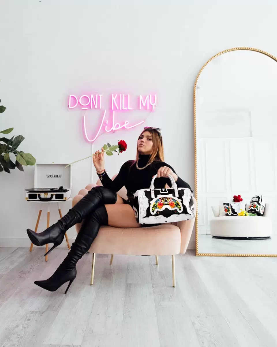 Dimensioni: 8″ x 7,5″ x 13″ Tasca con cerniera in metallo Cerniere posteriori Tasca per sneaker con cerniera cerniere dorate Cinghie regolabili per taglie personalizzate Cerniere in metallo con hardware in metallo Borsa di denaro Sprayground
