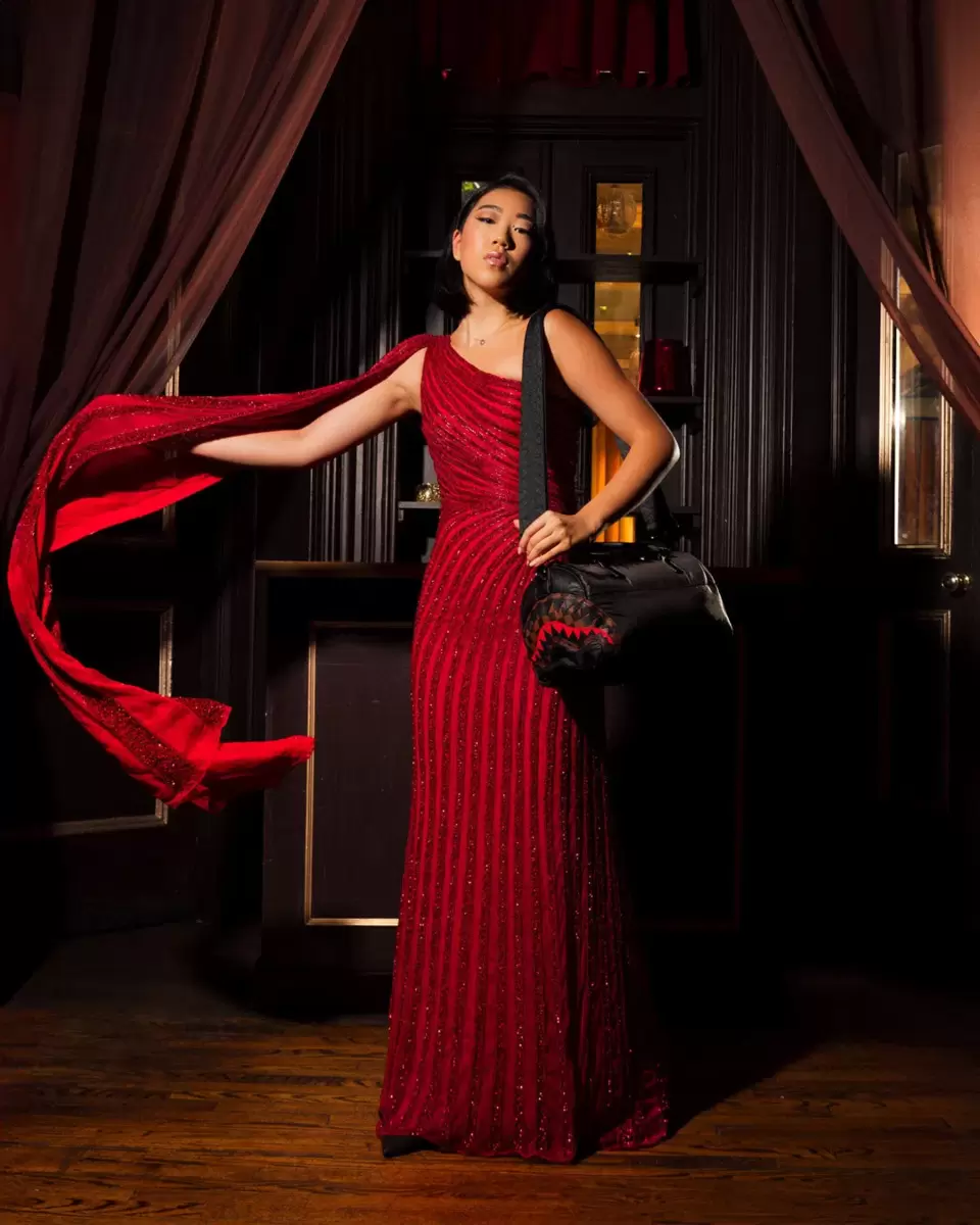 Dimensioni: 8″ x 7,5″ x 13″ Tasca con cerniera in metallo Cerniere posteriori Tasca per scarpe da ginnastica con cerniera cerniere dorate Cinghie regolabili per taglie personalizzate Cerniere in metallo con hardware in metallo Borsa di denaro Sprayground