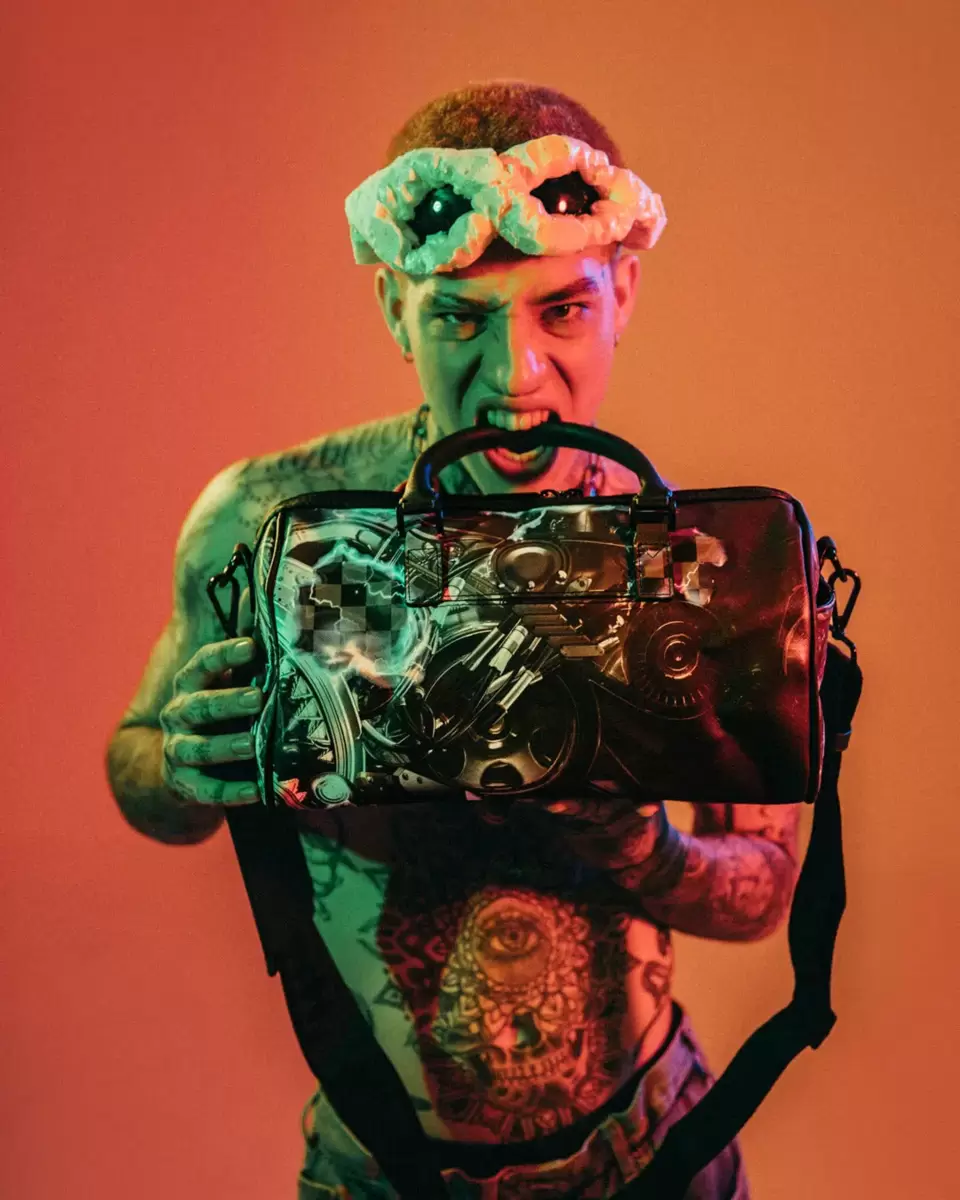Dimensioni: 8″ x 7,5″ x 13″ Tasca con cerniera in metallo Cerniere posteriori Tasca per sneaker con cerniera cerniere dorate Cinghie regolabili per taglie personalizzate Cerniere in metallo con hardware in metallo Borsa di denaro Sprayground