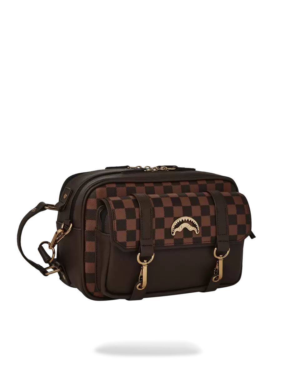Decorata con tasche cargo a forma di squalo, occhiello e clip.