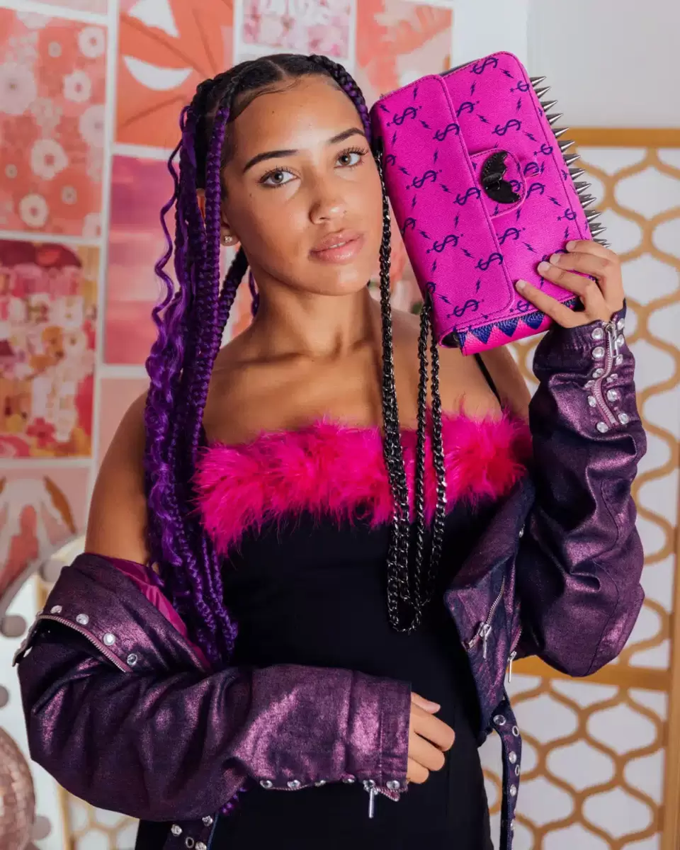Borsa a mano con patta e chiusura a scatto con dettagli a forma di squalo