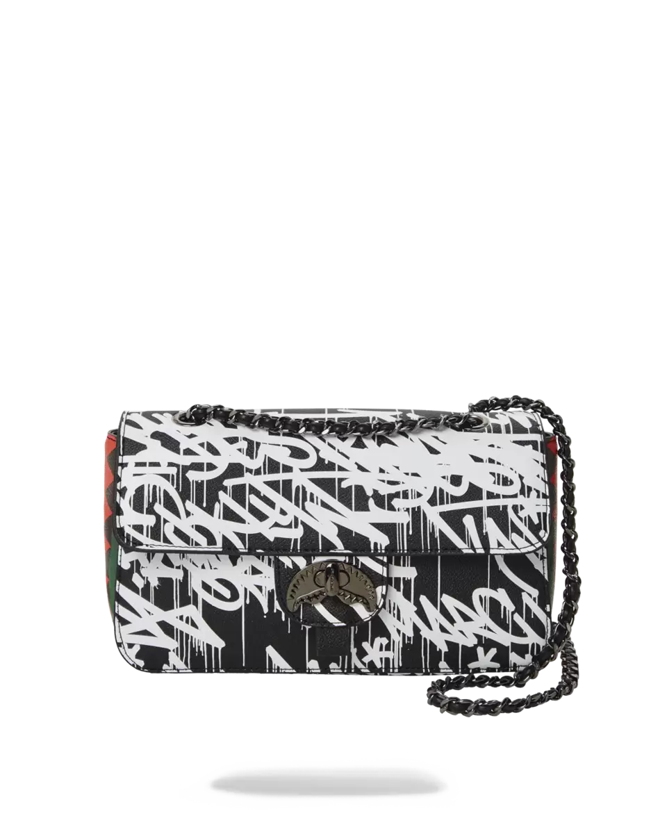 Dimensioni H 5,2″ x L 9,6″ x P 2,5″ Borsa a mano con patta e chiusura a scatto distintiva Borsa con tracolla a catena regolabile Può essere indossata a tracolla Doppia catena da indossare