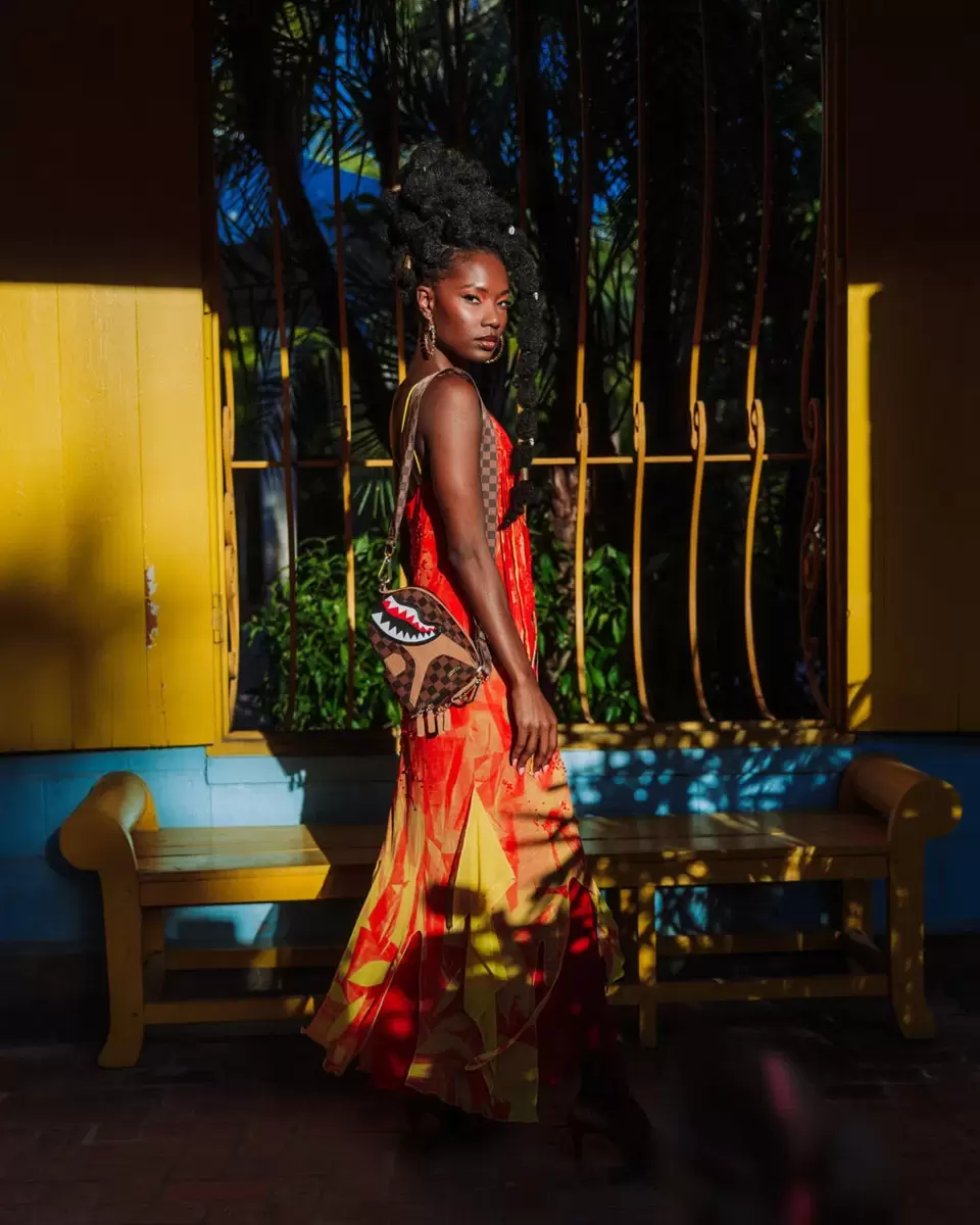 Dimensioni: A 20,3 cm x L 14 cm x P 7,6 cm 2 scomparti con cerniera Può essere indossata sulla schiena o sulla parte anteriore del corpo Cinghia regolabile in fettuccia verticale Shark Mouth
