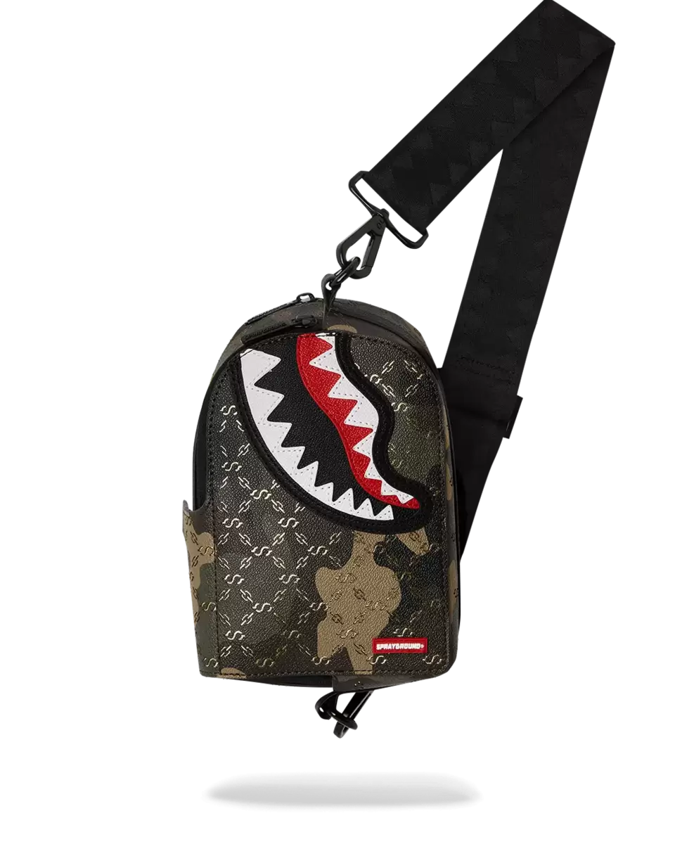 Dimensioni: A 20,3 cm x L 14 cm x P 7,6 cm 2 scomparti con cerniera Può essere indossata sulla schiena o sulla parte anteriore del corpo Tracolla regolabile in fettuccia verticale Shark Mouth