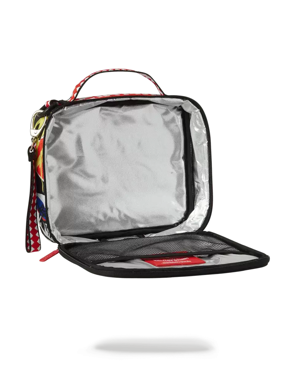 Dimensioni: 8,5″ x 3″ x 8,5″ Doppia apertura con cerniera Maniglia superiore Maniglia laterale rimovibile Cerniere rosse con ferramenta in metallo Tasca portaoggetti con cerniera