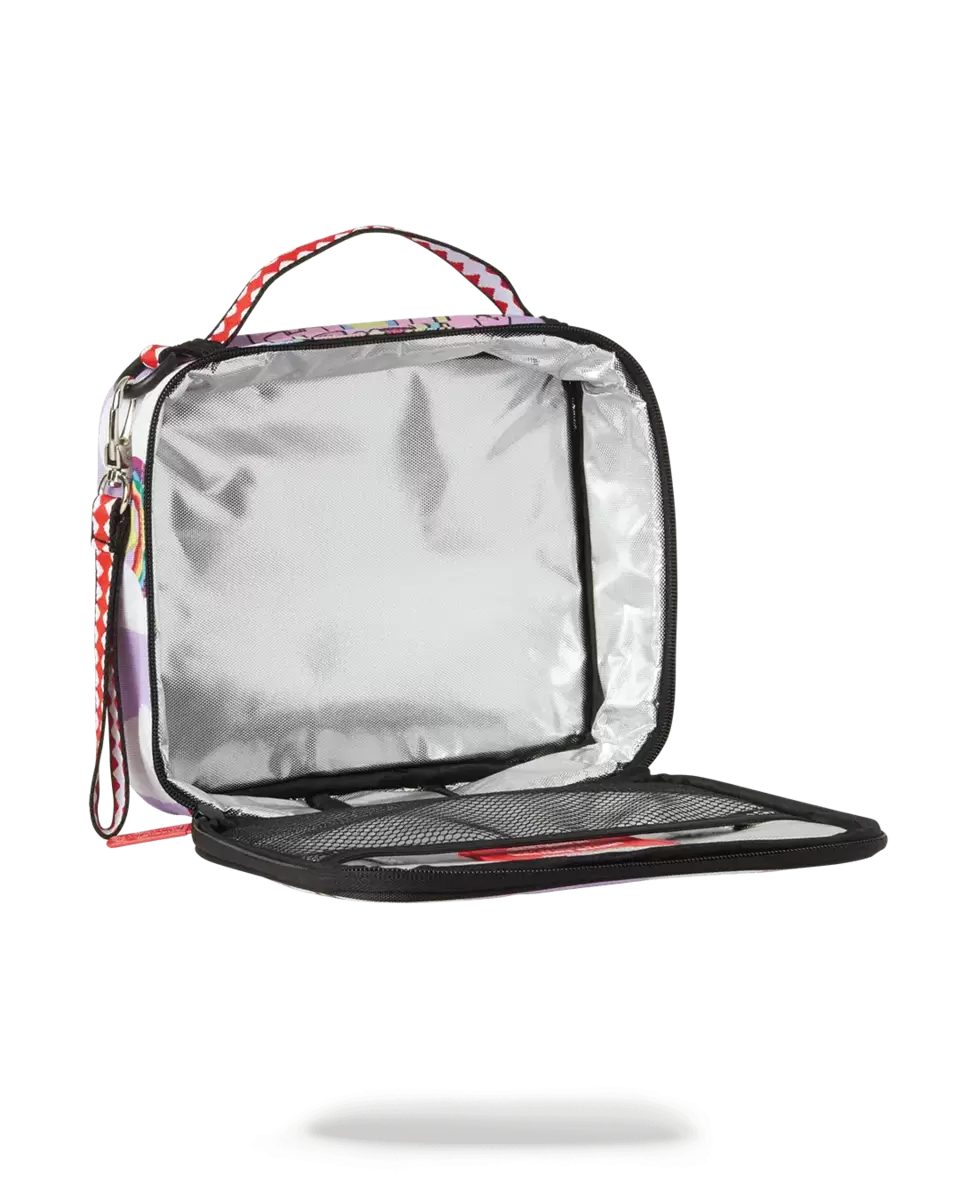 Dimensioni: 8,5″ x 3″ x 8,5″ Doppia apertura con cerniera Maniglia superiore Maniglia laterale rimovibile Cerniere rosse con ferramenta in metallo Tasca portaoggetti con cerniera