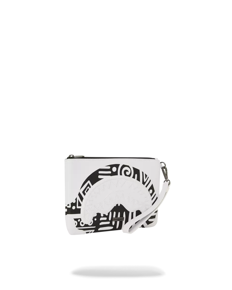 Pochette con cinturino da polso rimovibile, maniglia sul pannello frontale, chiusura con cerniera. 1 tasca interna. 18 cm x 25 cm x 6,3 cm.