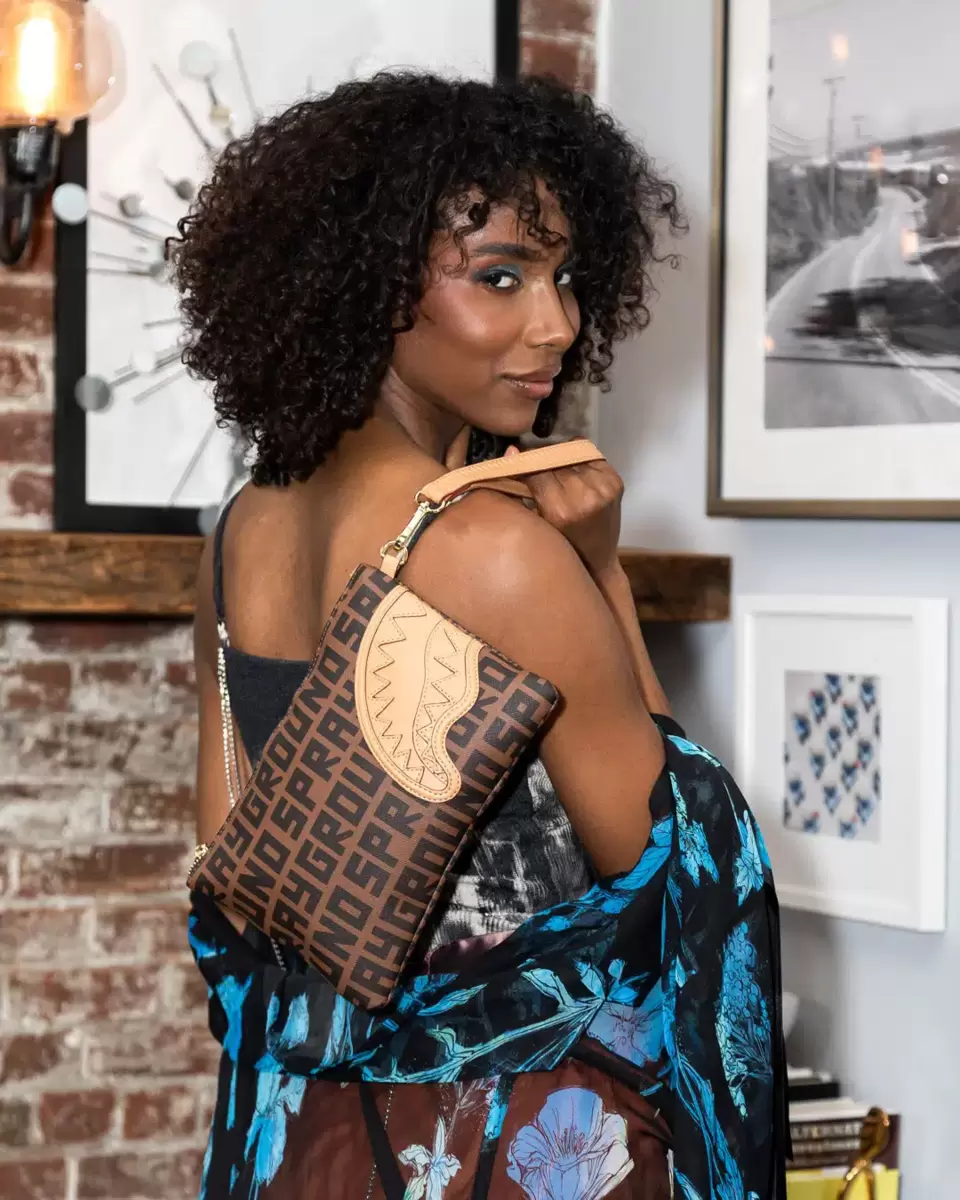Pochette con cinturino da polso rimovibile, maniglia sul pannello frontale, chiusura con cerniera, 1 tasca interna 18 cm x 25 cm x 6,3 cm