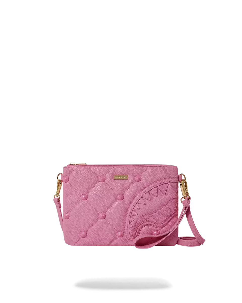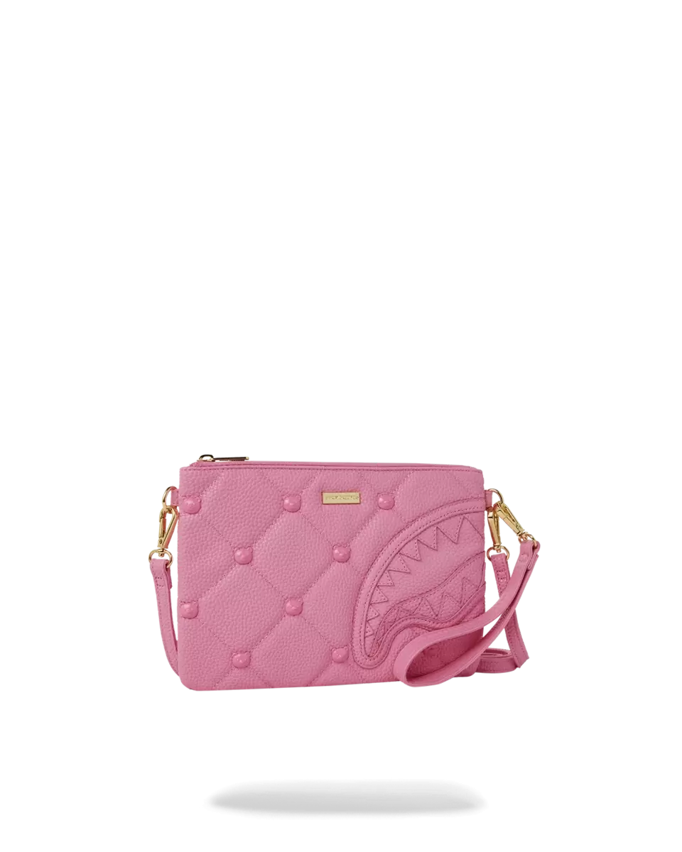 Trapuntata rosa con borchie a forma di orso. Dettagli in smalto rosa e hardware dorato
