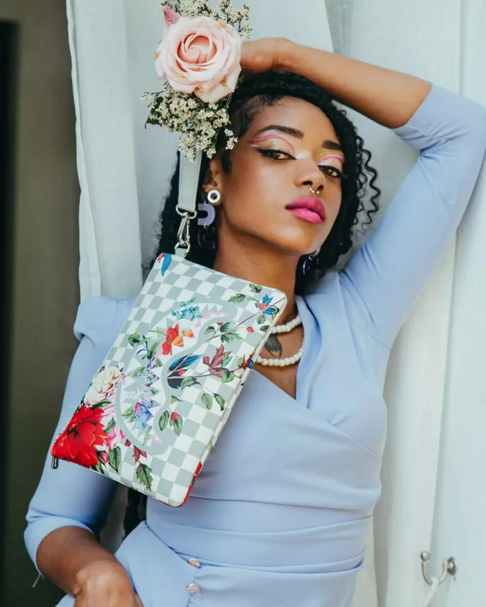Pochette con cinturino da polso rimovibile, maniglia sul pannello frontale, chiusura con cerniera, 1 tasca interna 7″ X 10″ X 0,25″