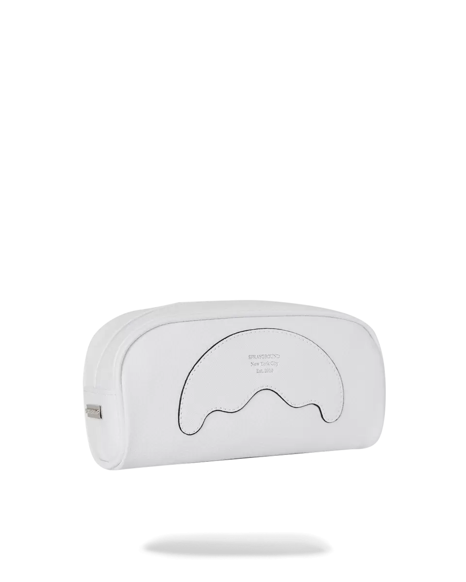 Taglia e cuci la forma di bocca di squalo con lettere in lamina d’argento in rilievo. Piccola custodia perfetta per qualsiasi cosa, dalle matite al trucco. Dimensioni 4, x 2,75, x 8, cerniera a