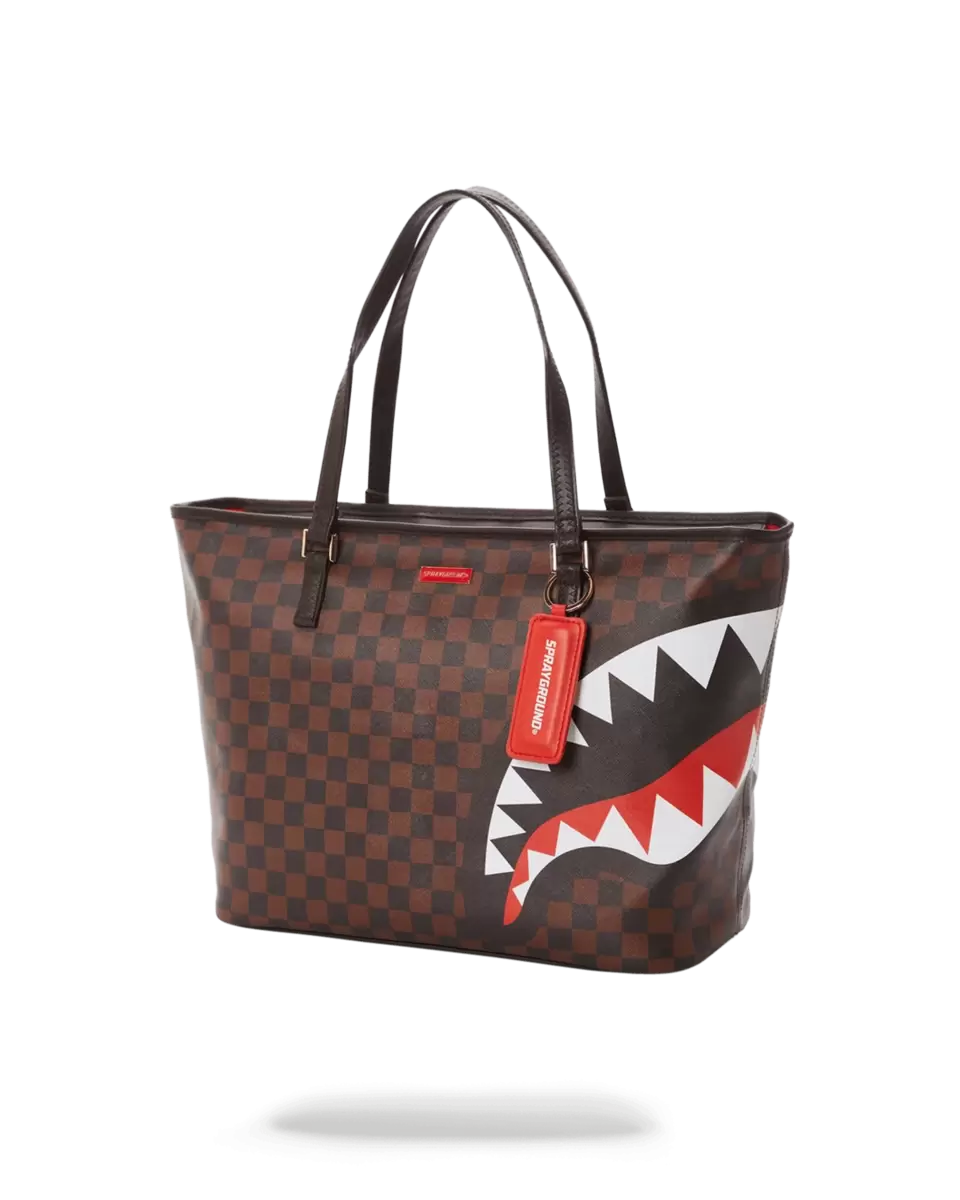 Dimensioni: 48,3 x 16,5 x 29,7 cm. Apertura superiore con cerniera. Doppio manico superiore. Portachiavi Sprayground. Cerniere dorate con parti metalliche.