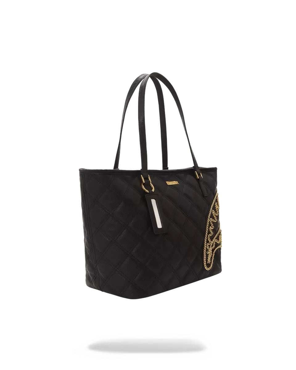 Dimensioni: 48,3 x 16,5 x 29,7 cm Apertura superiore con cerniera Doppio manico superiore Portachiavi Sprayground Cerniere dorate con finiture in metallo