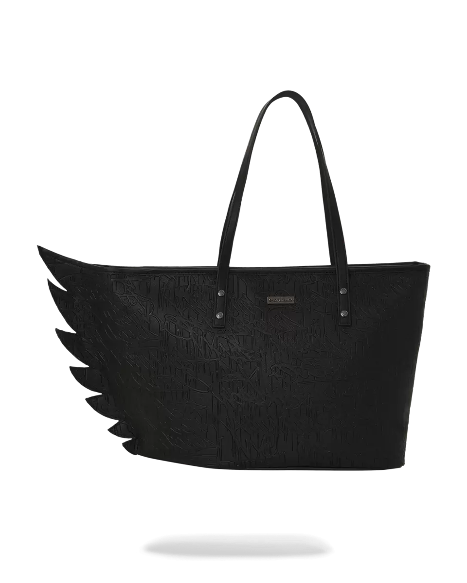 Dettaglio a forma di ala, chiusura con cerniera, dettagli metallici color canna di fucile