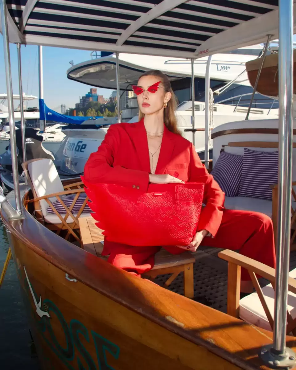 Dettaglio a forma di ala, chiusura con cerniera, dettagli metallici color canna di fucile