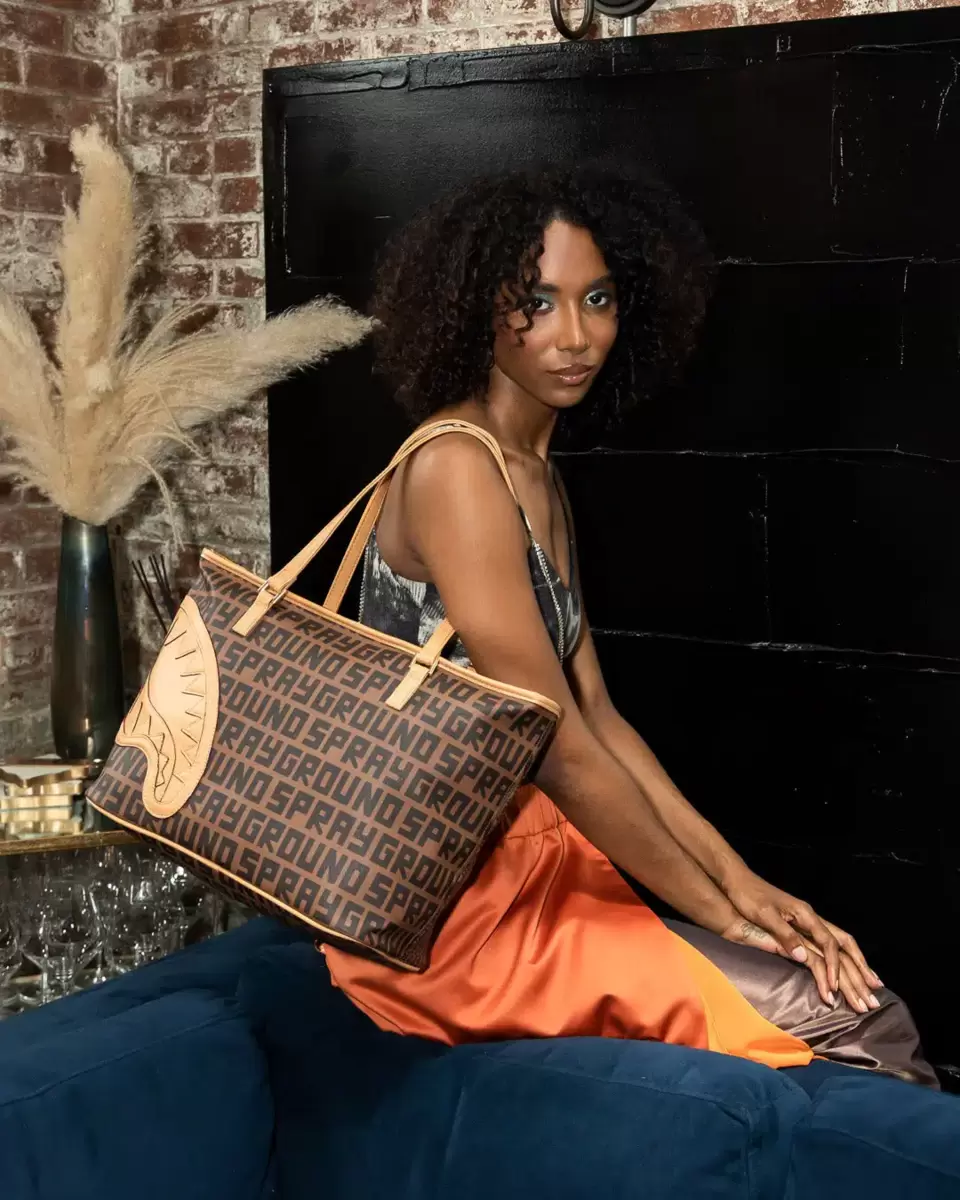 Dimensioni: 48,3 x 16,5 x 29,7 cm. Apertura superiore con cerniera. Doppio manico superiore. Portachiavi Sprayground. Cerniere dorate con parti metalliche.