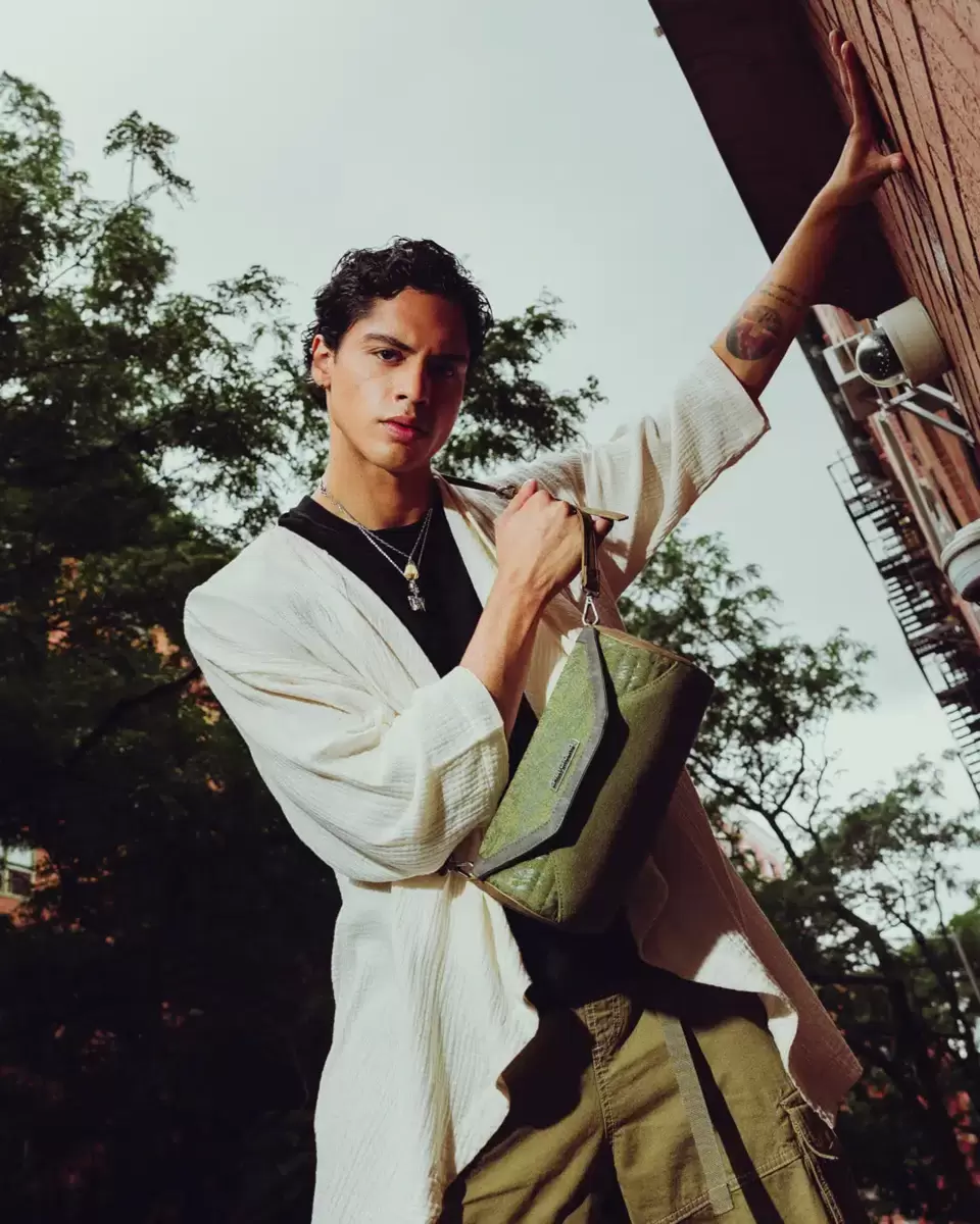 BORSA SUPERIORE: 43,2 cm (A) X 28,4 cm (L) X 15,2 cm (P), TRACOLLA: 13,2 cm (A) X 25,4 cm (L) X 14,9 cm (P) ALTEZZA TOTALE: 57,1 cm (22,5″) Tela con scritta stampata, la parte inferiore è una tracolla rimovibile/convertibile, la borsa superiore ha 4 tasche esterne, 1 tasca interna in rete – la tracolla ha chiusure magnetiche a scatto e 1 tasca interna con cerniera