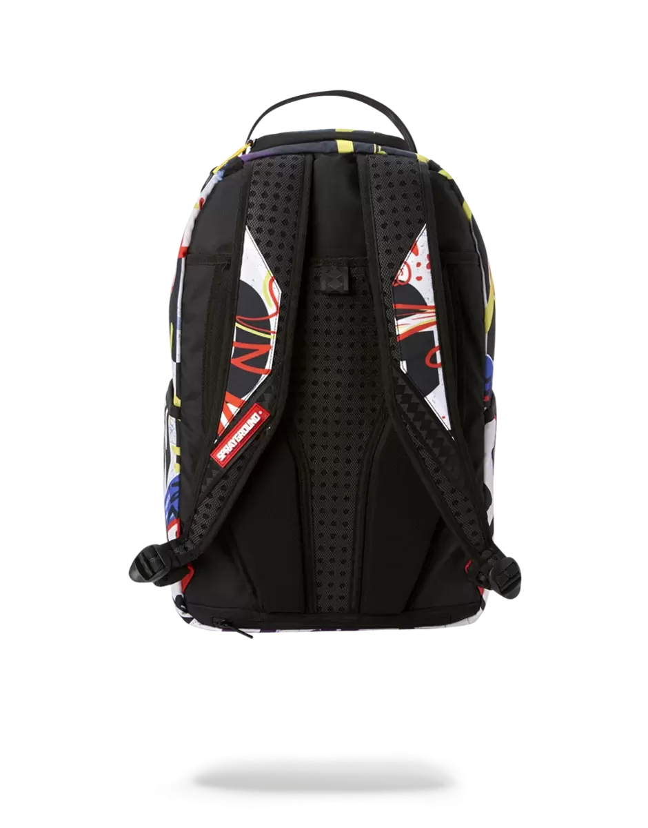 Dimensioni: 18″ x 6″ x 11,5″ Tasca frontale con cerniera Tasche laterali Tasca portaoggetti con cerniera Scomparto separato in velluto per occhiali da sole Imbottitura posteriore ergonomica in rete Cinghie regolabili per una vestibilità personalizzata Cerniere multicolori con ferramenta in metallo Stemma in metallo “Sprayground Authentic” La tasca posteriore scorrevole si collega al bagaglio a mano per avere le mani libere