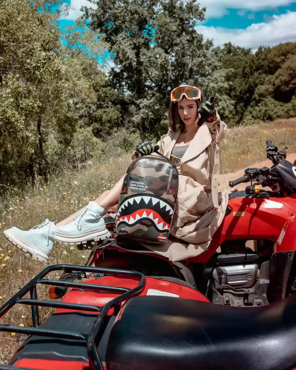 Dimensioni: 18″ x 6″ x 11,5″ Tasca frontale con cerniera Tasche laterali Tasca portaoggetti con cerniera Scomparto separato in velluto per occhiali da sole Imbottitura posteriore ergonomica in rete Cinghie regolabili per una vestibilità personalizzata Cerniere dorate con ferramenta in metallo Stemma in metallo “Sprayground Authentic” La manica posteriore scorrevole si collega al bagaglio a mano per avere le mani libere