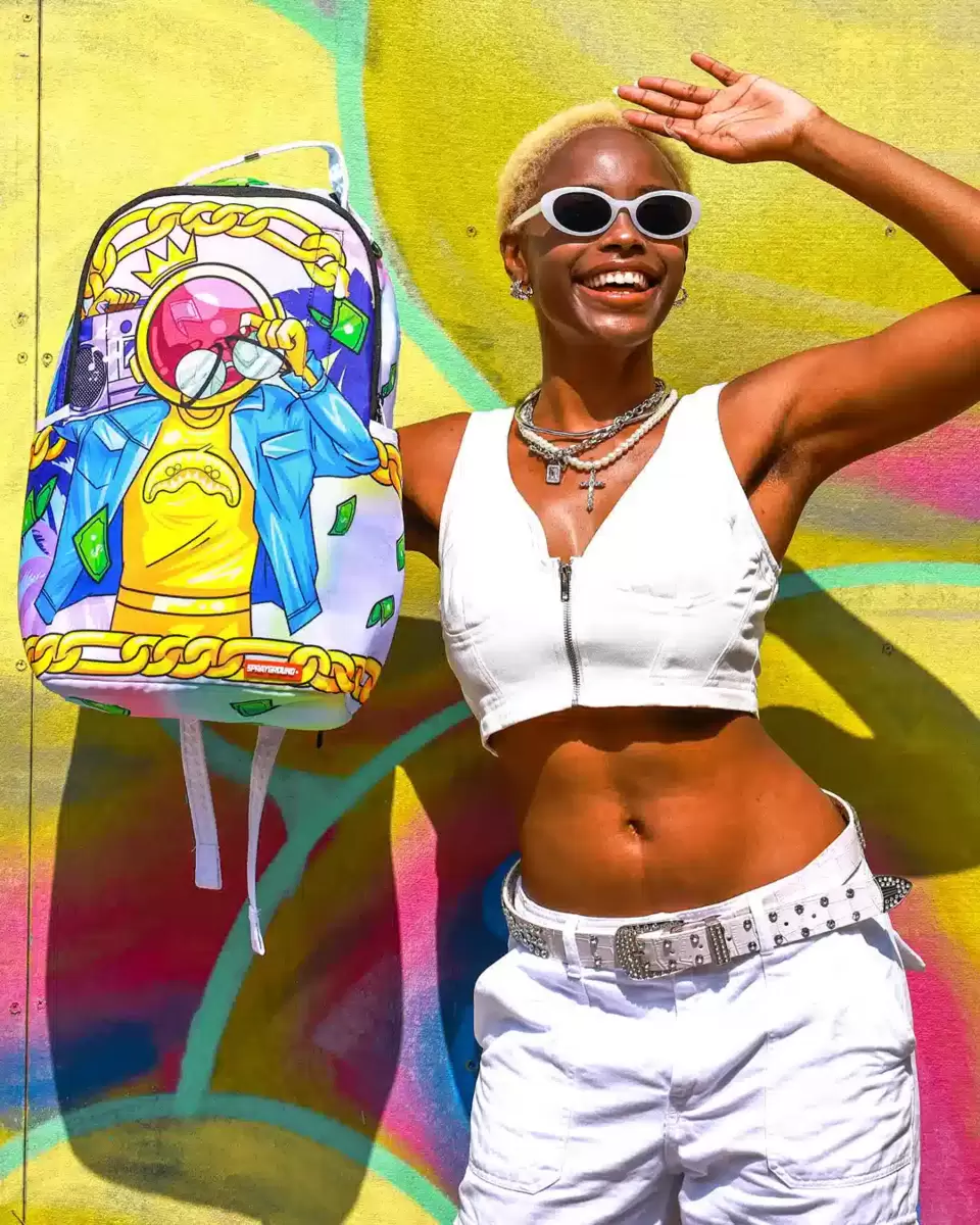 Dimensioni: 18″ x 6″ x 11,5″ Tasca frontale con cerniera Tasche laterali Tasca portaoggetti con cerniera Scomparto separato in velluto per occhiali da sole Imbottitura posteriore ergonomica in rete Cinghie regolabili per una vestibilità personalizzata Cerniere dorate con ferramenta in metallo Stemma in metallo “Sprayground Authentic” La tasca posteriore scorrevole si collega al bagaglio a mano per avere le mani libere