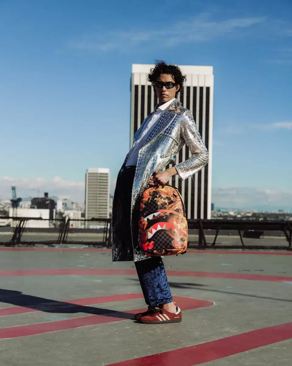 Dimensioni: 18″ x 6″ x 11,5″ Tasca frontale con cerniera Tasche laterali Tasca portaoggetti con cerniera Scomparto separato in velluto per occhiali da sole Imbottitura posteriore ergonomica in rete Cinghie regolabili per una vestibilità personalizzata Cerniere dorate con hardware in metallo Stemma “Sprayground Authentic” in metallo La manica posteriore scorrevole si collega al bagaglio a mano per avere le mani libere